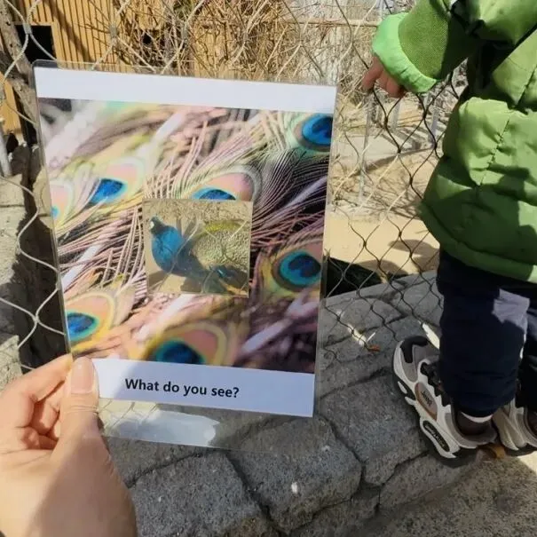 小班的孩子们手里握着一张张动物皮毛卡片。黑白条纹是谁?粗糙纹路的皮肤又是谁?他们像小小的侦探,在动物园里寻找着答案。在寻找和对比中,孩子们不仅锻炼了观察力,更学会了一种探索世界的方式-用眼睛去发现,用心去记住,每一种生命都有它独一无二的印记。