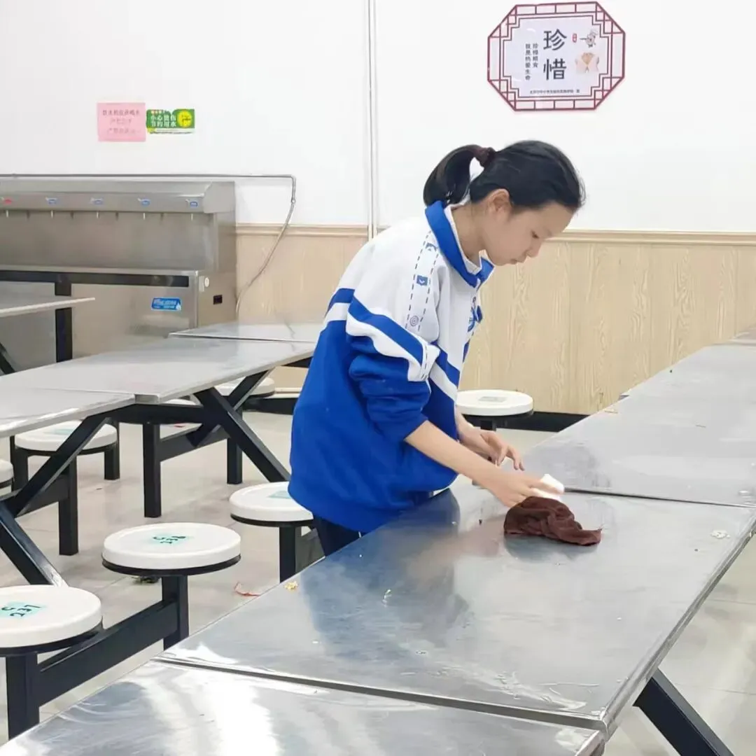 实践期间,同学们始终严于律己、自立自强,用点滴行动展现良好风貌与责任担当。每天清晨6:30,基地操场生机勃勃,同学们跑操步伐整齐、口号嘹亮,跑完后朗朗晨读,将自律融入晨光里;每日认真整理内务,把被子叠得整整齐齐,生活用品摆放有序,悄悄褪去稚气、学会独立;用餐时自觉遵守秩序,践行光盘行动,勤俭节约、文明有礼,每一处细节都值得称赞。