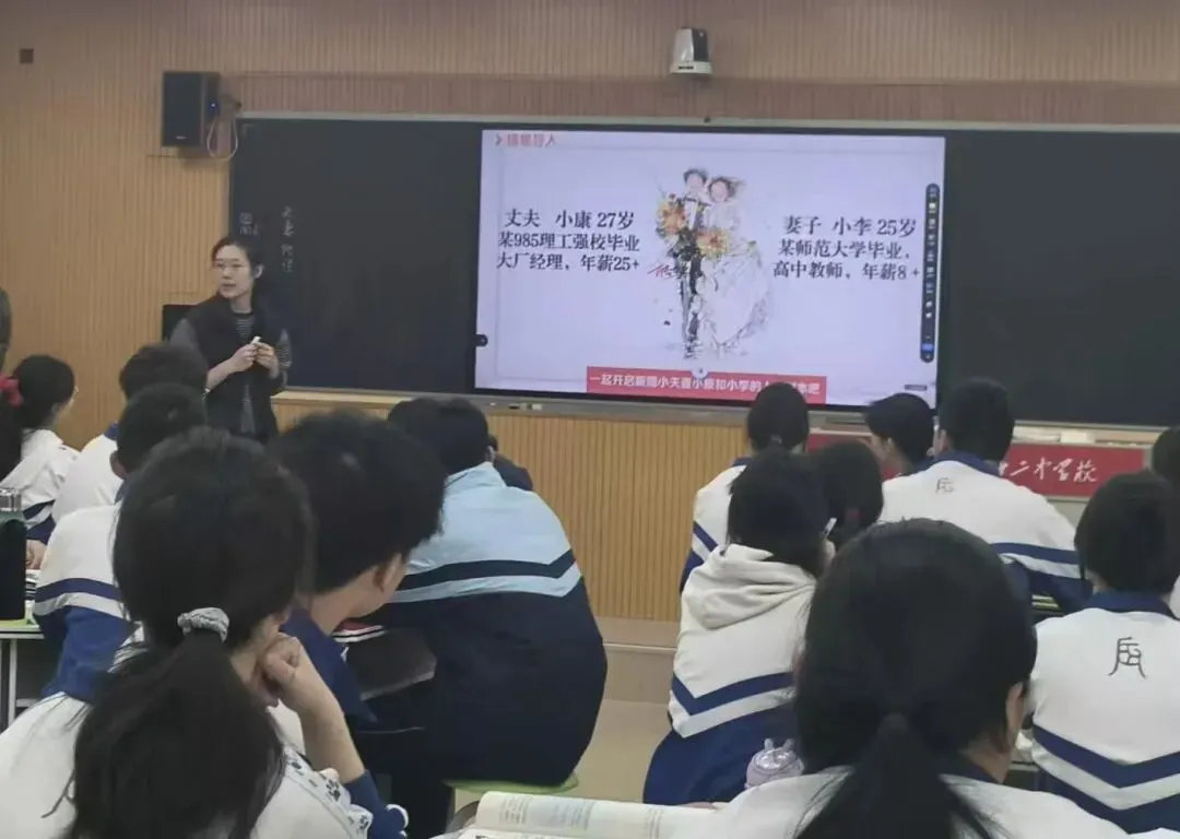 李老师以“法律如何保障婚姻关系”为议题,围绕“法律如何保障夫妻人身关系平等”“法律如何保障夫妻财产关系平等”为子议题,通过课前诵读、合作探究、总结思考等环节,以年轻夫妻婚姻中的烦恼和幸福为情境,将法、理、情融为一体,帮助学生树立相互尊重、互谅互让的婚姻家庭观念,运用法治思维解决夫妻财产纠纷,自觉在家庭生活中维护好、履行好自己和家人在婚姻关系中的权利和义务。