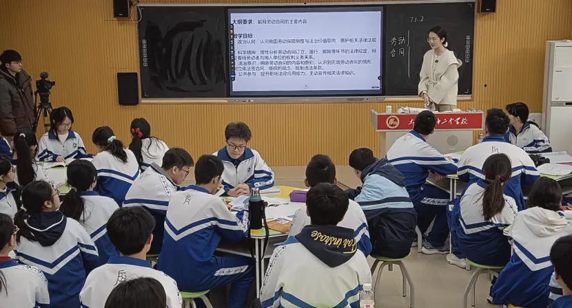 王老师以“劳动也要签合同”为核心,围绕“签不签”“怎么签”“如何解”三大议题,通过案例分析、合同辨析、情景讨论等议学活动,系统讲解劳动合同的含义、条款、订立原则及效力等核心知识,帮助学生明晰劳动关系与劳务关系的区别。紧扣外卖骑手等现实劳动场景,贴近学生生活实际;以议学活动为载体,凸显“做中学”,兼顾知识传授与素养培育;通过自评、互评、教师评价相结合的方式,实现教学评一体化。
