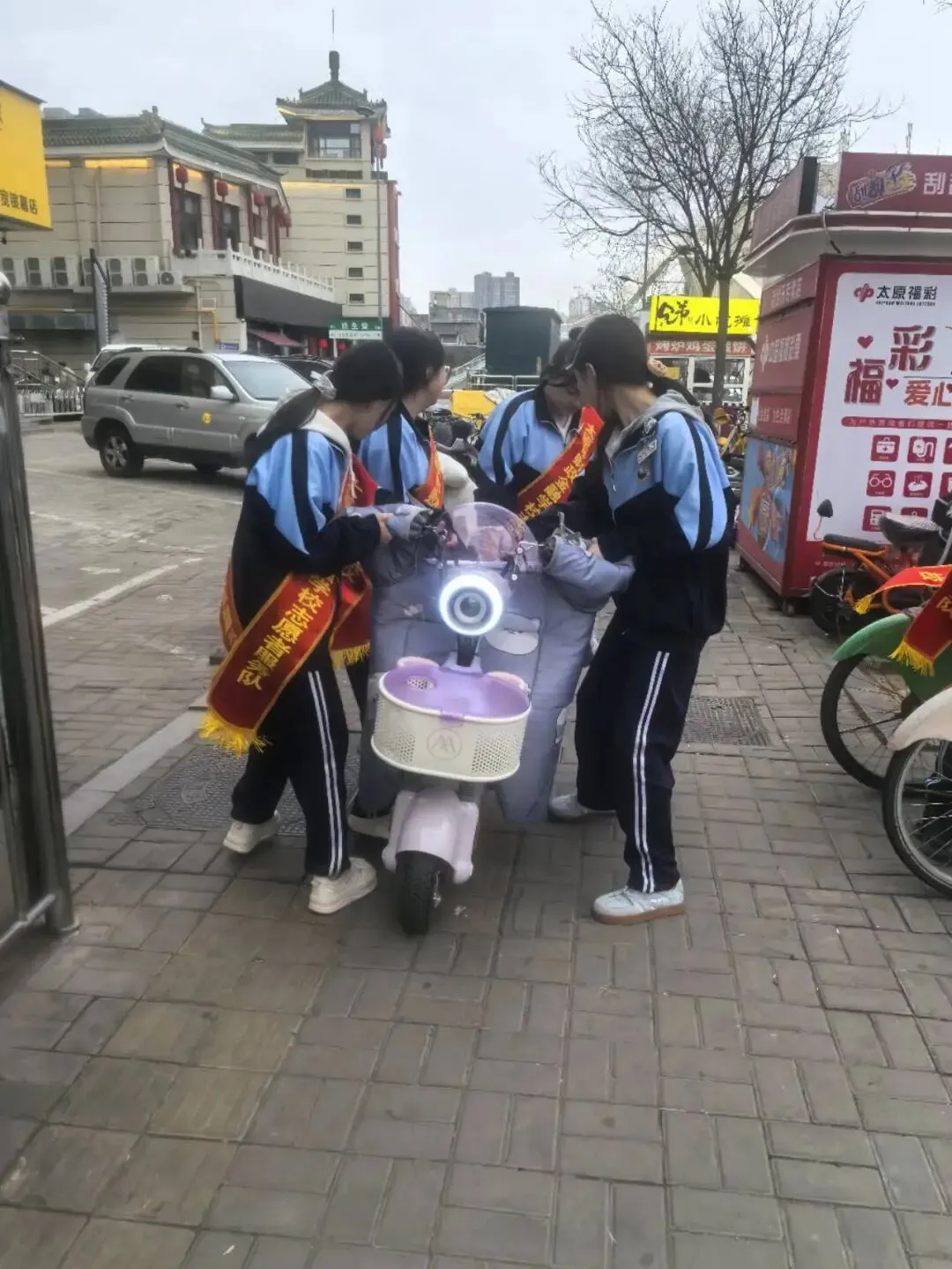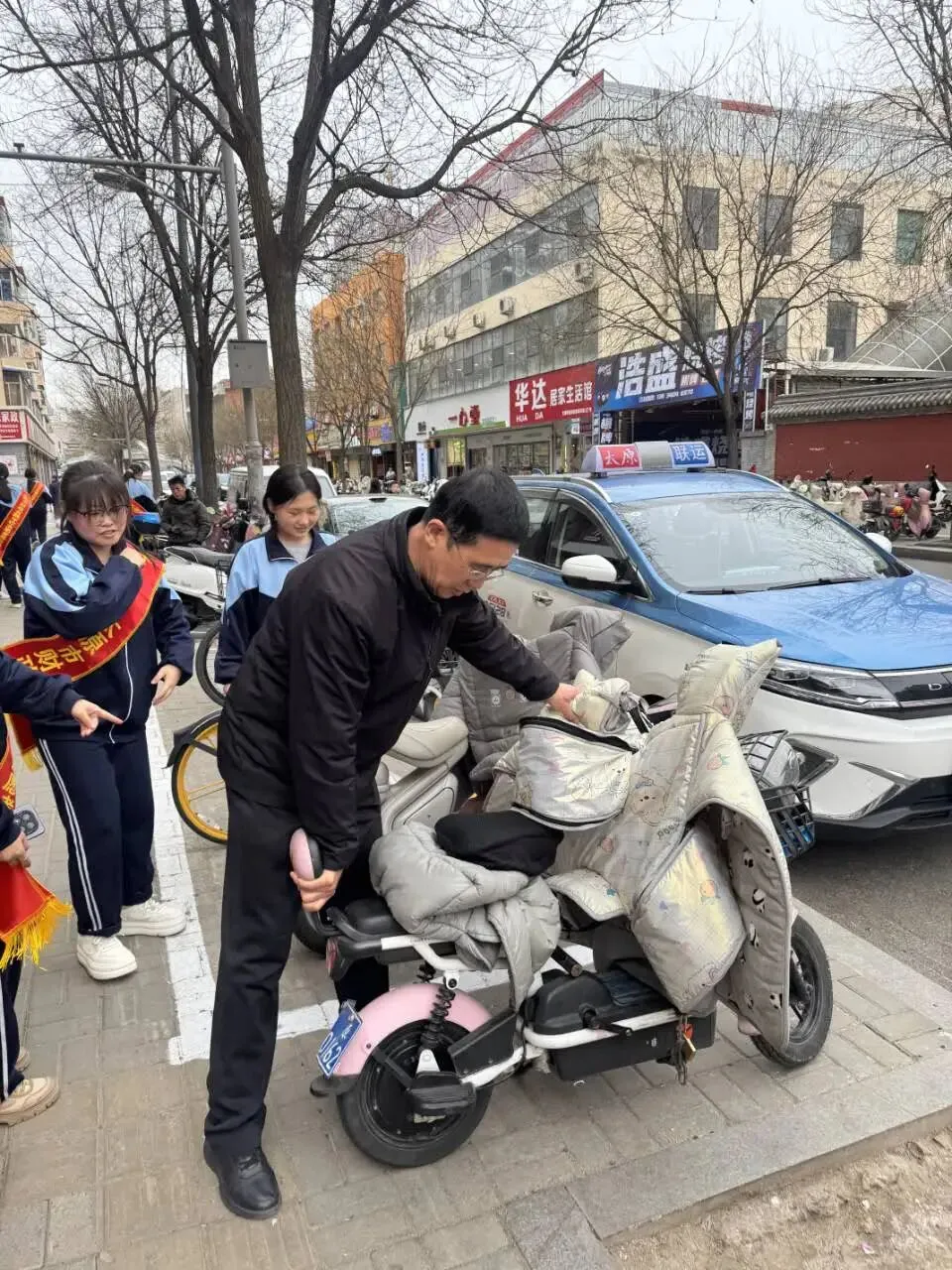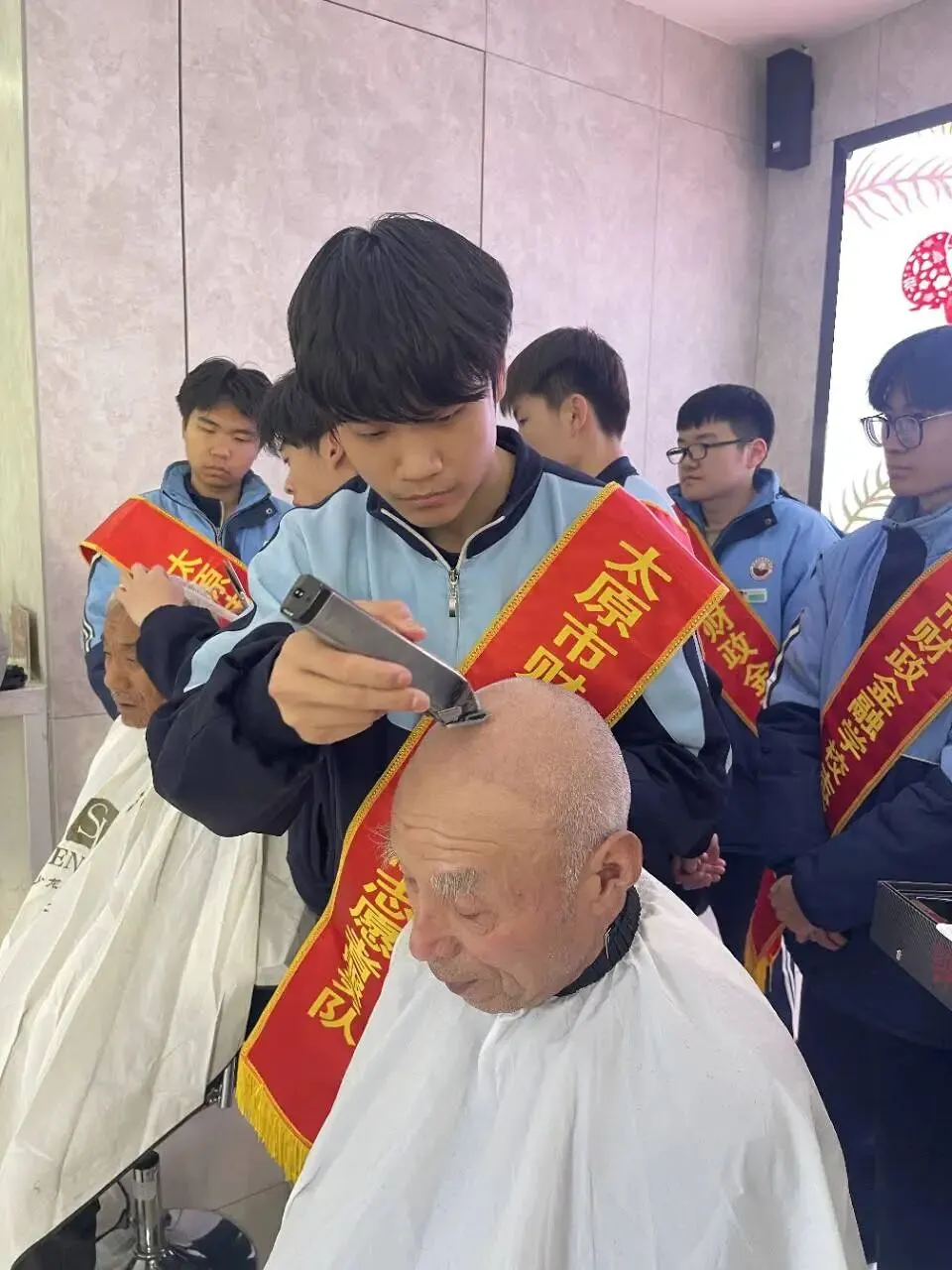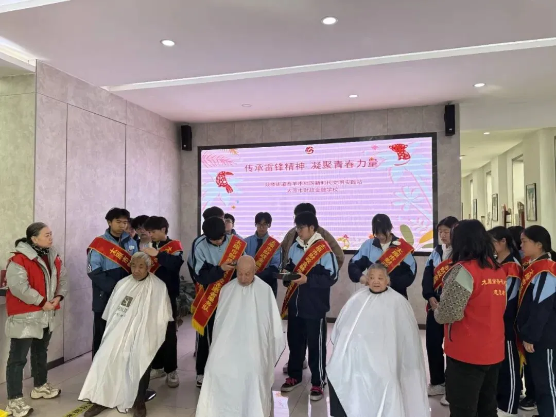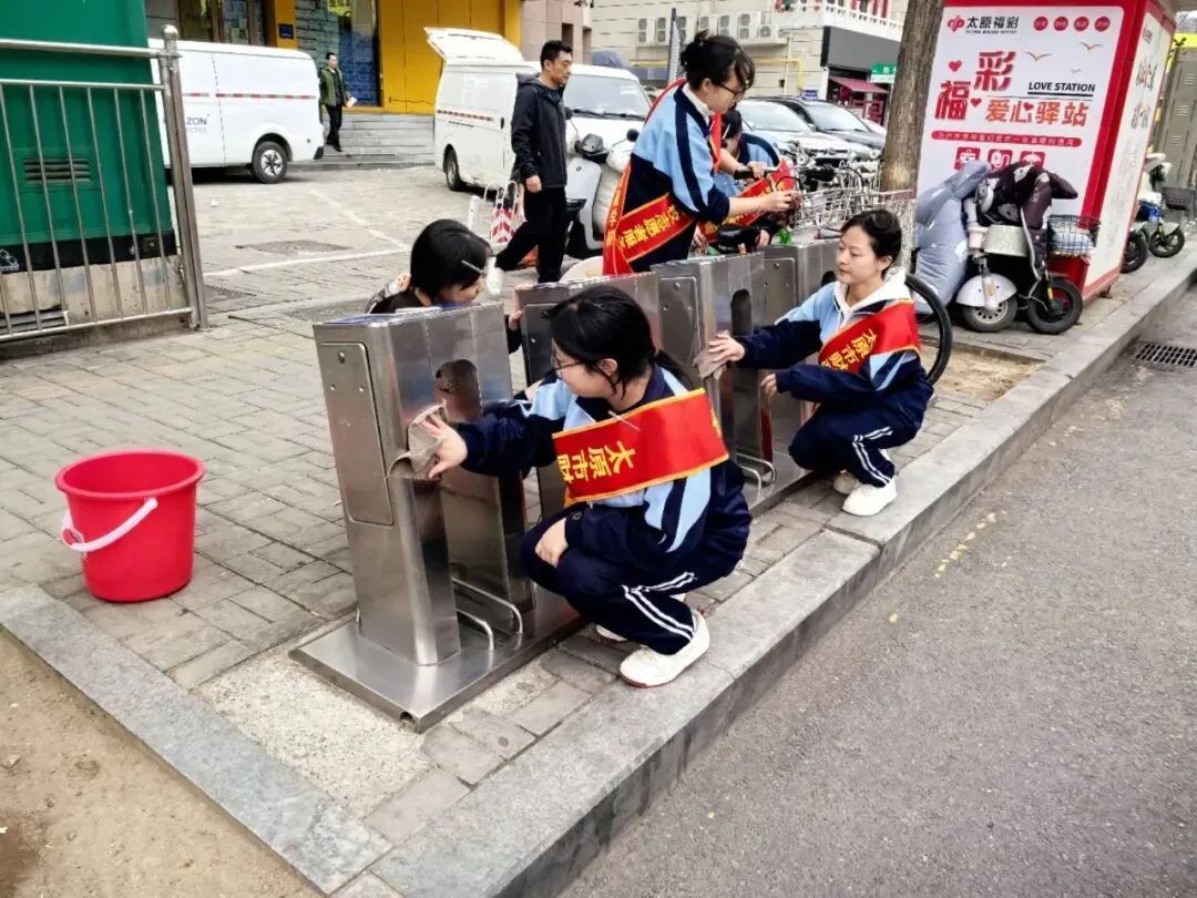 活动中,各志愿队伍各司其职、有序行动。形象设计团总支牵头的义务理发志愿服务队,联合杏花岭区半坡街党群服务中心,为行动不便的老人修剪发型,动作娴熟、以贴心服务传递温暖;烹饪团总支的公交站点维护志愿服务队,对学校附近公交站点的站牌、候车亭进行全面清洁,引导乘客文明排队候车,并为老弱病残孕等特殊群体提供乘车帮扶,优化市民出行环境;计算机及艺术设计团总支的校园环境整治志愿服务队,对校园“奋进路”展板、操场及防护栏开展彻底清扫,检查维护垃圾桶、报修损坏公物,劝导爱护校园绿植,打造整洁有序的校园育人氛围;金融及财会团总支的街头环境美化志愿服务队,聚焦学校周边区域,开展烟头清零、共享单车规范摆放工作,并向商户和行人发放创城宣传手册、宣讲文明理念,为践行文明注入青春力量。