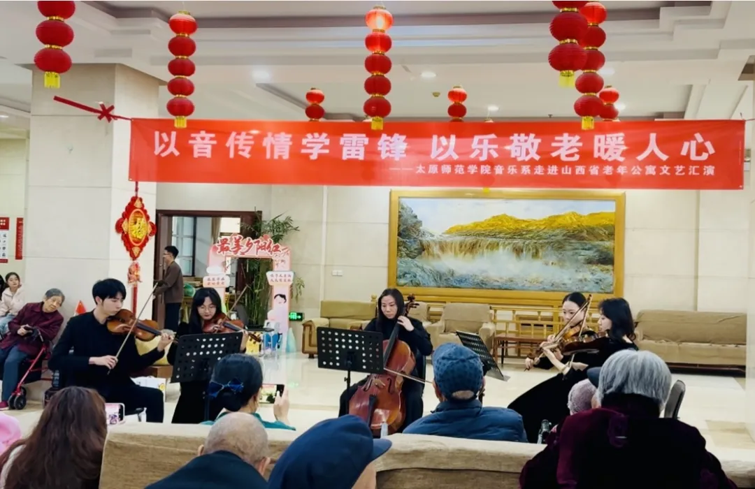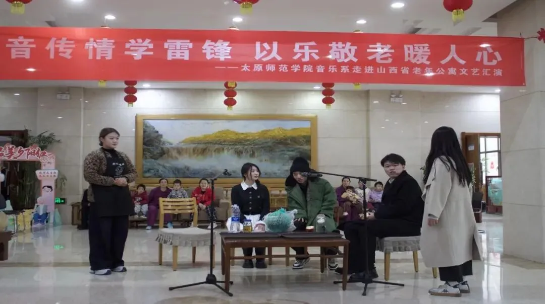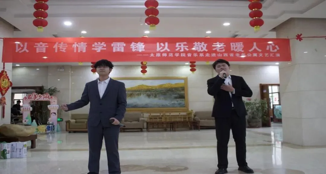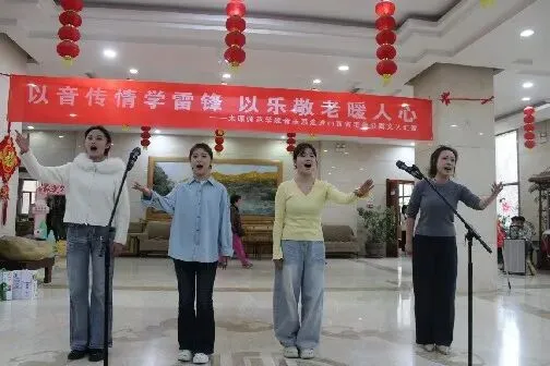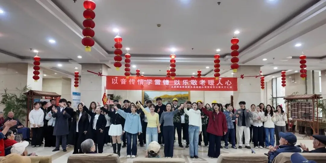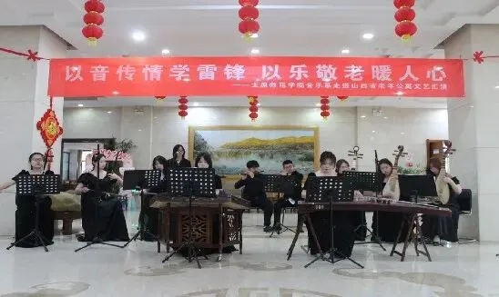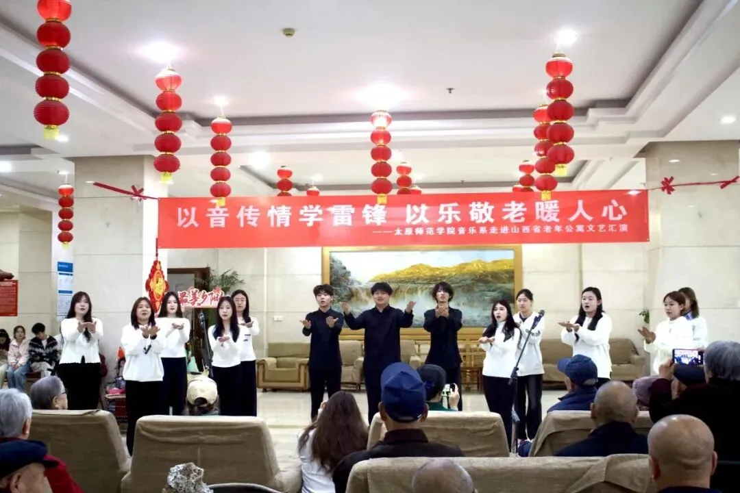 为深入学习贯彻党的二十届四中全会精神,认真落实习近平总书记致中国志愿服务联合会第三届会员代表大会重要贺信精神,引导我系青年大力弘扬雷锋精神、志愿精神,2026年3月21日下午,太原师范学院音乐系“以音传情学雷锋 以乐敬老暖人心”文艺汇演在山西省老年公寓颐年居大厅温情上演。音乐系学生志愿者们用一场青春洋溢的文艺慰问演出,为老人们送去春日的温暖与祝福,用实际行动传承和弘扬雷锋精神。