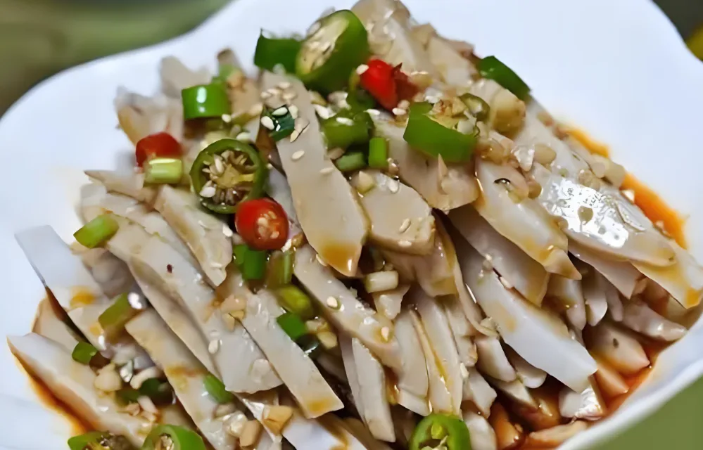 太原的灌肠就属于虚晃一枪——它跟肠子半毛钱关系没有。荞面灌肠,是用纯荞面调糊上碗蒸出来的。蒸好的灌肠色泽深润,质地扎实弹韧。可以凉拌,可以热炒,过年时更是晋源区家家必备的“年食”。