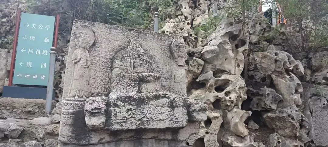院内西侧有一条长长的碑廊,陈列着唐宋时期的碑刻,被称为“纯阳三绝”之一的涅槃变相碑就在其中。