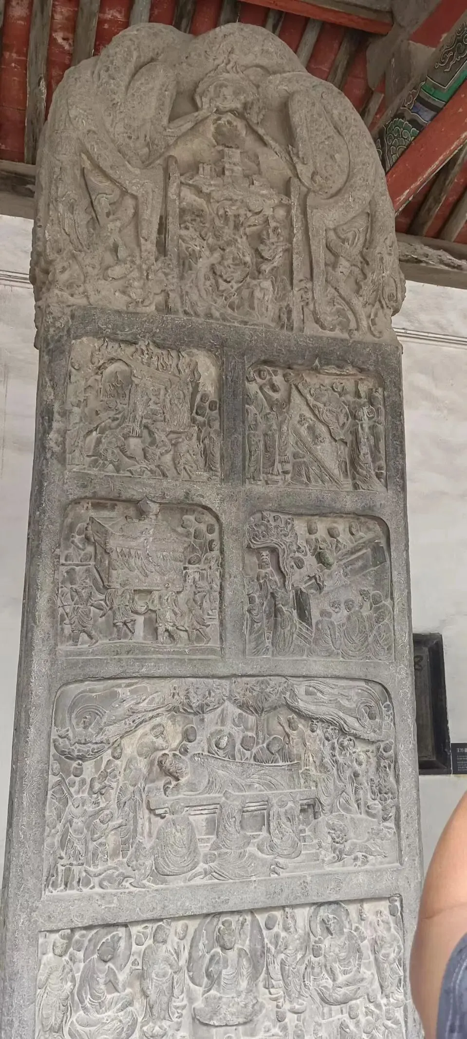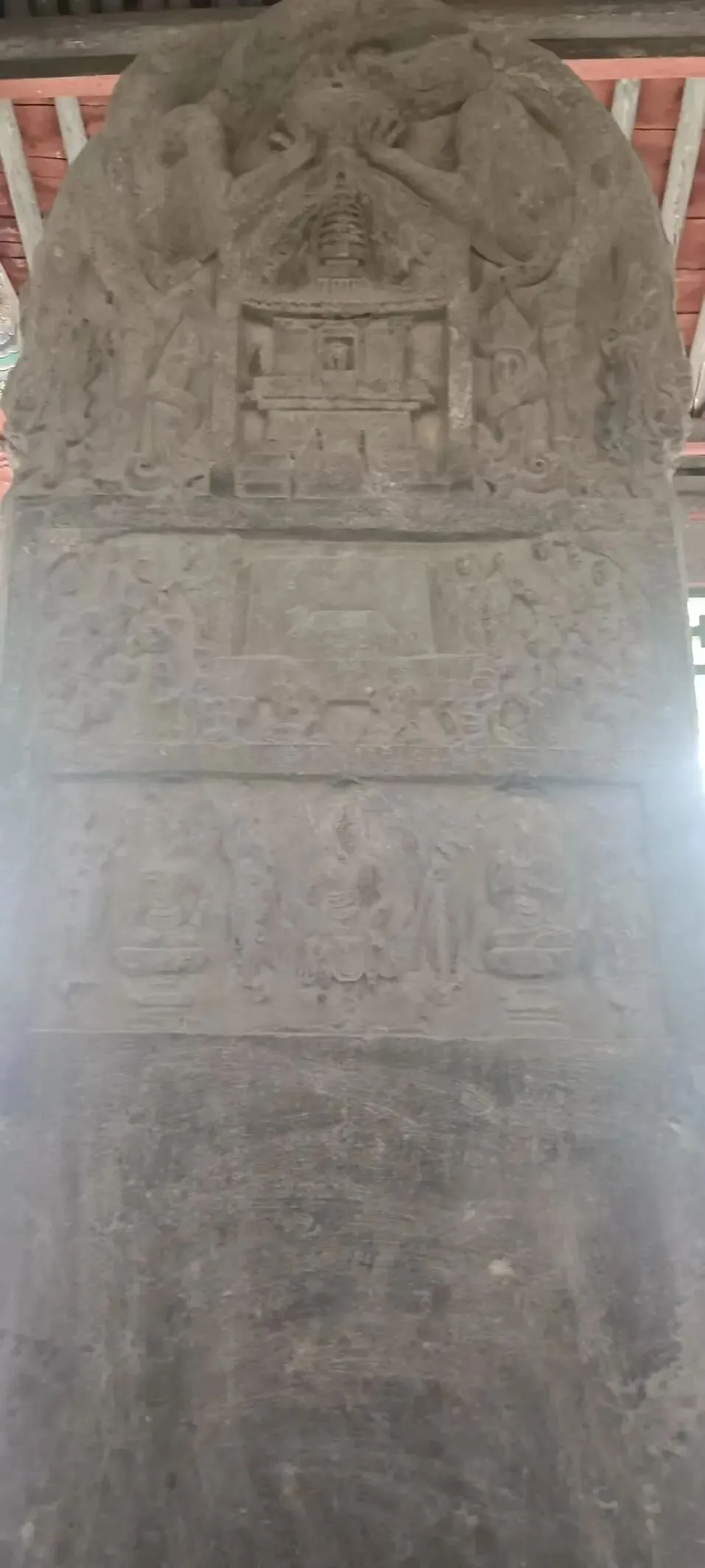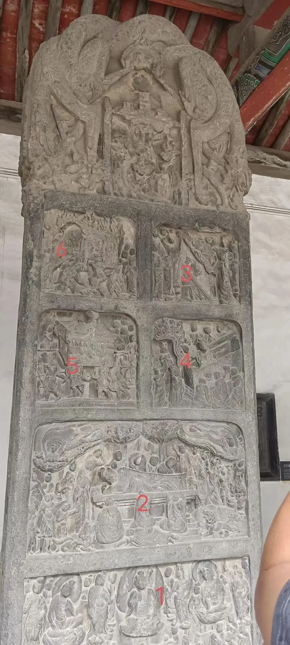 碑身下面雕有与佛陀涅槃变相有关的六幅故事。