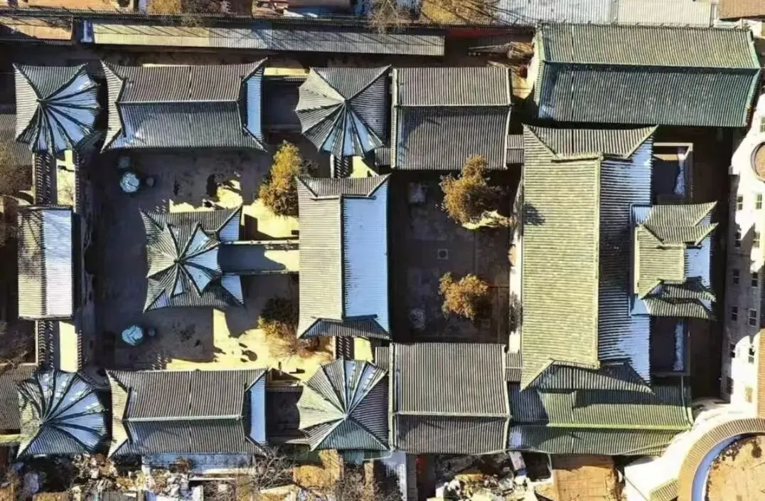 中国古建筑之美,不仅是正视图、细节图美,就是一般人视角不容易看到的鸟瞰图,都美不胜收。八角攒尖亭仿佛一朵花;九角攒尖顶,好像张开的伞。