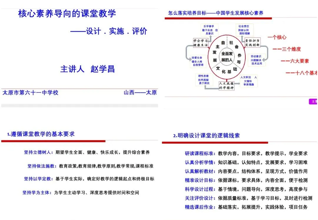 她首先指出,学校从“五环节自主学习模式”升级为“3+X”教学模式,变的只是形式与结构,始终如一的是对学生核心素养培养的深度聚焦。这一模式的核心在于教学设计、实施与评价的一体化推进,既要具备课堂实操的可行性,更要确保评价反馈的有效性。赵学昌主任的讲座,既有科学理念的引领,又有具体路径的示范,使大家对核心素养导向下的课堂教学理解更加深刻、把握更加精准,为新学期“3+X”教学模式的深化提供新的专业引领。