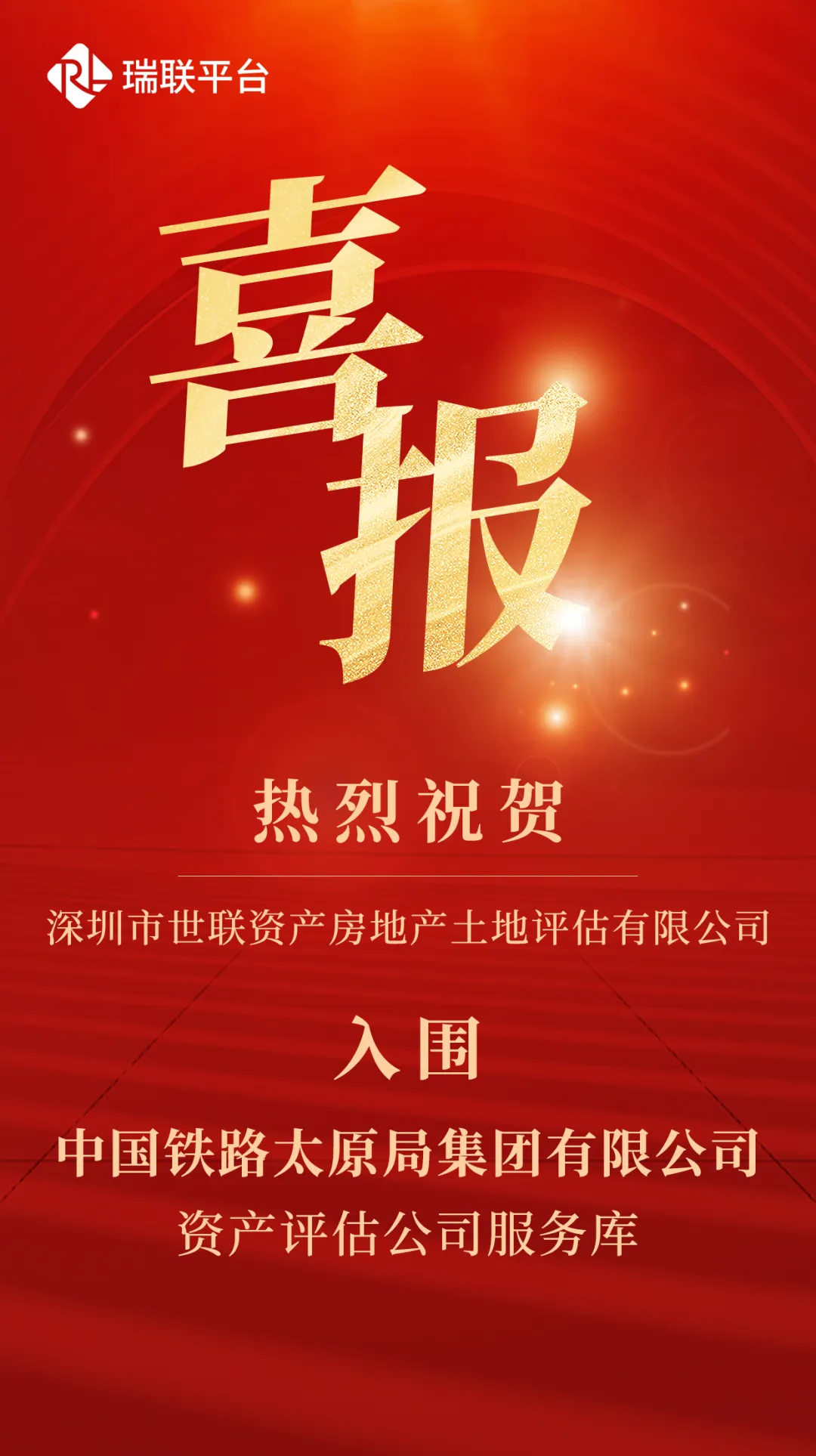 喜报 | 世联资产入围中国铁路太原局集团资产评估服务库