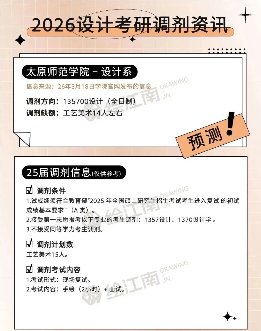 根据官网信息,2026考研的“调剂意向采集系统”将于3月27日开通,正式“调剂服务系统”将于4月8日开通。对于今年计划调剂的设计考研生,及时掌握调剂信息至关重要,所以小编这边给大家整理下今年可能会有调剂的院校,仅供参考~~