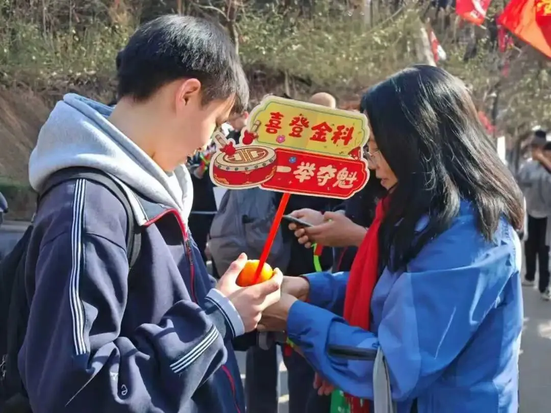 登顶时刻,校领导、老师、家长与学子们击掌加油,是温暖的鼓励,更是坚定的期许!