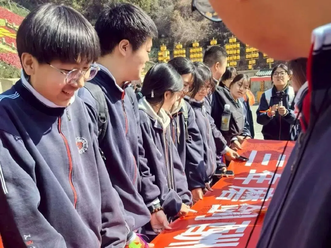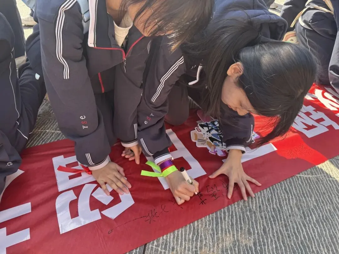 各班学子依次在宣誓条幅上郑重签名,一笔一划,写下的是百日冲刺的誓言,更是对未来的期许。