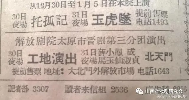 太原市晋剧三团该团的前身是1952年秋由代县来并演出的新生晋剧团,以霍金凤、任礼为主要演员。1953年,马秋仙(艺名筱果子)、马兆麟(艺名根根红)筱桂琴、张瑞仙等加入该团,剧团改称晋新剧团。1956年初,霍金凤等原唱北路梆子的演员相继离去,同年底经上级领导批准改组为国营太原市晋剧三团,由马秋仙出任团长,一直活动至1959年。