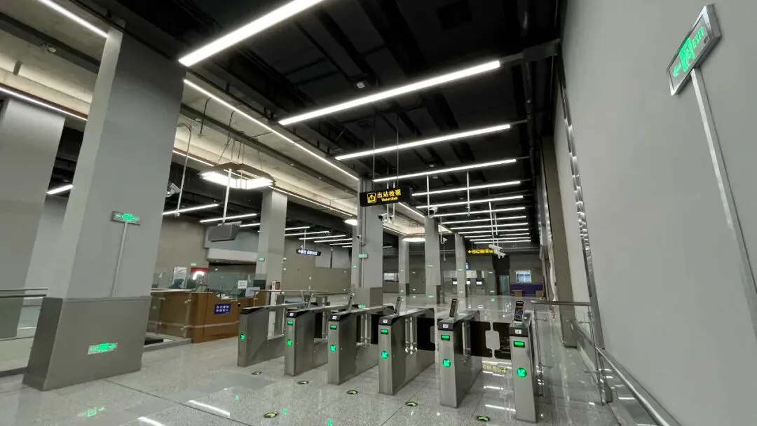 两站之间间隔平均不到2分钟,记者在“风驰电掣”的体验中,一眨眼功夫就来到长风街站。 在条状灯光下,一座座如同圆月般的造型设计打造出长风街商圈与众不同的时尚与潮流,与之搭配的灰色墙壁为金属板,灯光流转如一场梦幻流星雨,众多LED点光源排成阵列,形成一面大屏幕,未来将在不同节日里展示动态光影效果,营造截然不同的酷炫氛围。 此外,等候区一个个以“太”字作为造型的休闲凳,将银灰金属色与原木色和谐搭配,为地铁2号线增添了浓浓的“太原味儿”。参观者们纷纷期待着,在2号线开通运营之后,如梦如幻的地铁站一定是太原年轻人又一处争相合照打卡,许下浪漫之约的“顶流网红”。代表车站:西桥站