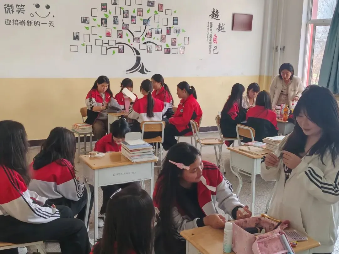 午后的教室里,太原生态工程学校形象管理社第二次社团活动热烈开展。暖黄与米白拼接的墙下,课桌拼成临时操作台,女生们围坐一圈,认真练习基础妆容。老师俯身温和指点,从底妆晕染到眉形修饰,逐一拆解技巧。同学们对着镜子整理发型、互调发饰,在交流中摸索适合自己的风格。阳光透过窗棂洒在校服上,青春气息满满,大家在实践中收获变美的底气与自信。