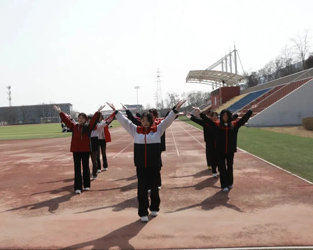 我校舞蹈社团在操场开展广播体操训练活动。活动中,社员们精神饱满、队列整齐,认真跟随节奏完成每一节动作。大家在练习中相互纠正姿态、规范动作细节,力求做到动作标准、整齐划一,大家态度积极,精神饱满 通过本次训练,不仅锻炼了身体协调性与节奏感,也展现出社员们积极向上、团结协作的良好精神风貌。