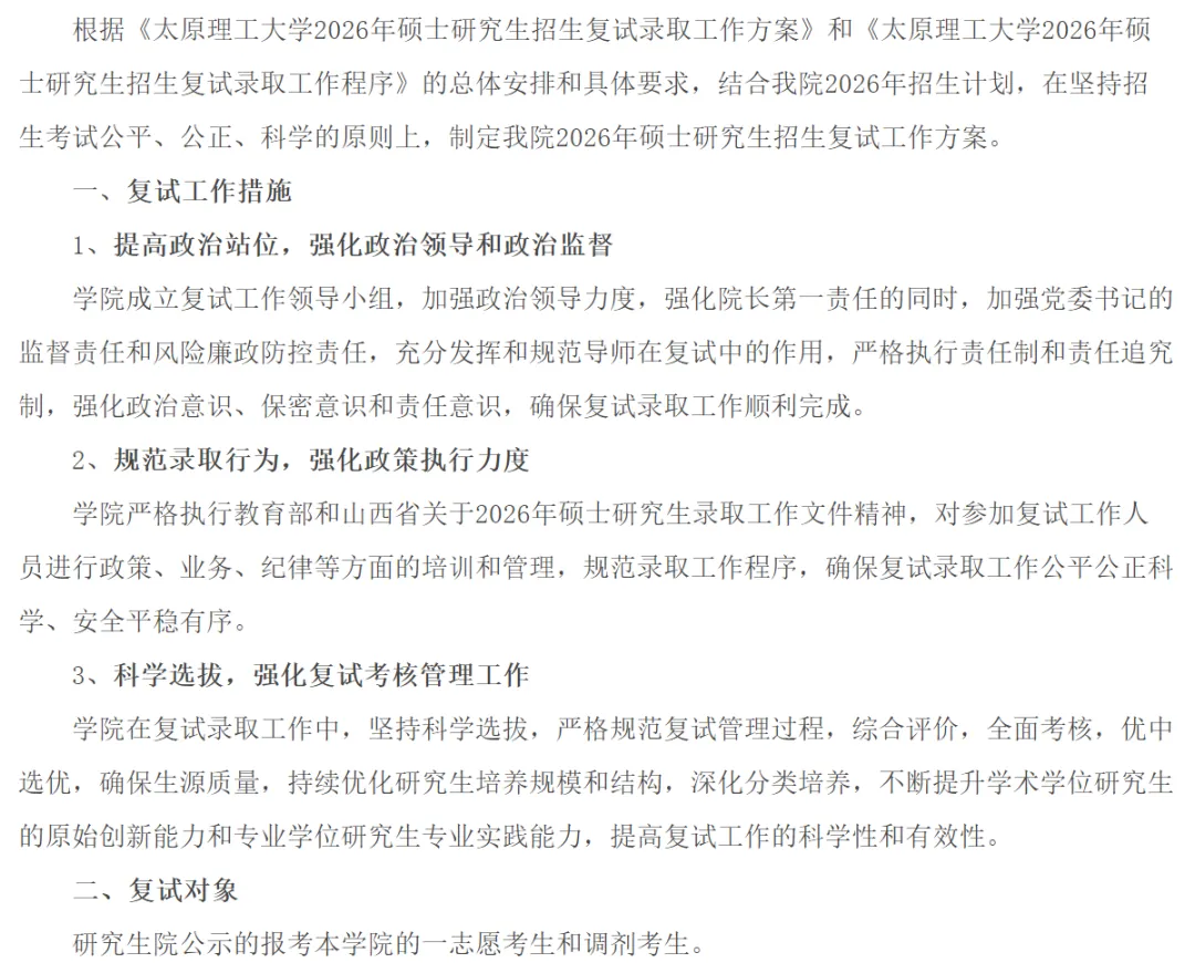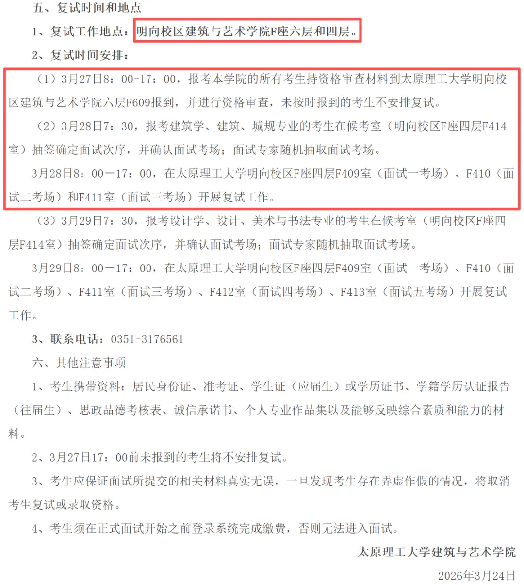 太原理工大学2026年硕士研究生招生【建筑与艺术学院复试工作方案】