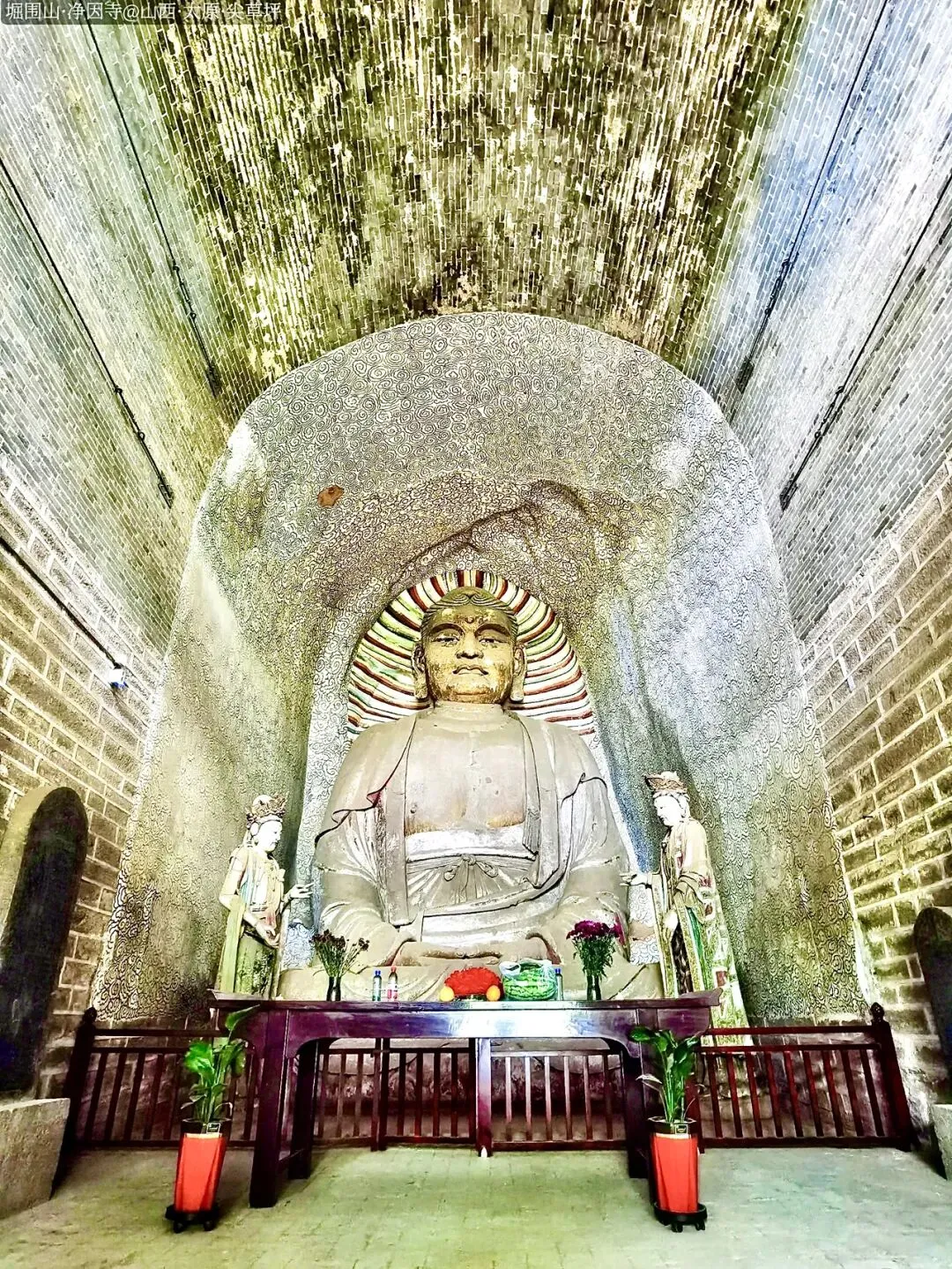 这里没有拥挤人潮,只有土佛、古柏、残碑、梵音,是太原城北难得的清净国保秘境。一入山门,土崖巍巍,大佛庄严,瞬间让人沉静——这是大地与信仰共生的奇迹,八百年不语,却道尽沧桑。