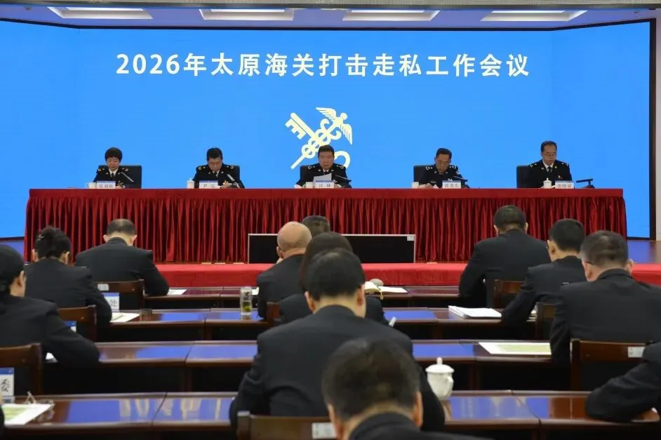 3月20日,太原海关召开2026年打击走私工作会议。太原海关党委书记、关长江林出席会议并讲话,关党委委员、政治部主任张晓波传达学习了2026年海关打击走私工作会议暨全国打私办主任会议精神,关党委委员、副关长张刘燕通报了2025年全国海关全员打私绩效情况,关党委委员、缉私局局长郭尧东作了专题会议报告,关党委委员、副关长尹亮主持会议并作会议小结。