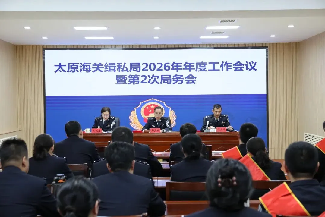 当天下午,为进一步学习贯彻关区打击走私工作会议精神、回顾总结2025年太原海关缉私局工作成效、部署做好2026年打私工作,太原海关缉私局于当日召开了2026年度工作会议,局党组书记、局长郭尧东就做好2026年重点工作提出“四个坚持”: