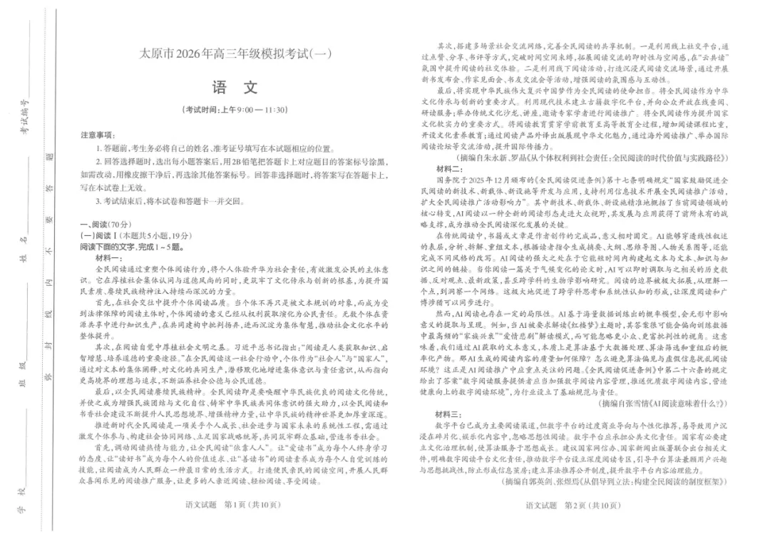 备受关注的2026年太原市高三第一次模拟考试已经开始!作为高三一轮复习收官、二轮冲刺启动的关键诊断性考试,本次一模是检验复习成果、找准知识漏洞、明确备考方向的核心参考。