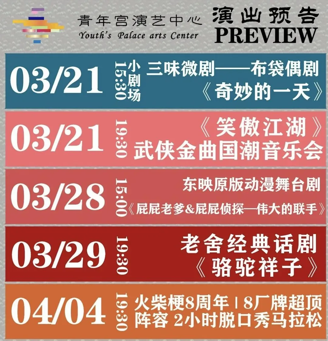 青年宫三月演出8场