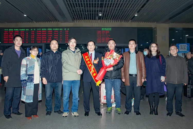 11月24日下午,当身披红色绶带、胸佩全国先进工作者奖章的邓存宝教授走出太原南站时,受到了校工会负责人和安全与应急管理工程学院干部教师代表的热烈欢迎。