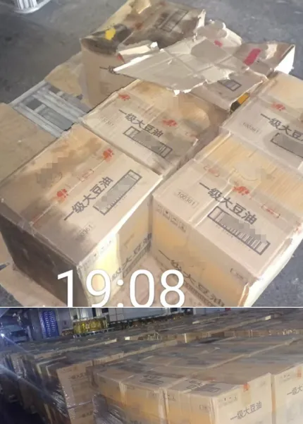 车辆侧翻导致大豆油货物相互碰撞挤压受损