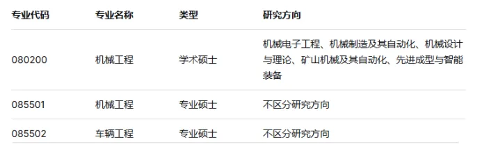 太原理工大学机械工程学院2025届推免共招收3个专业,涵盖学术硕士、专业硕士和直博生三种类型: