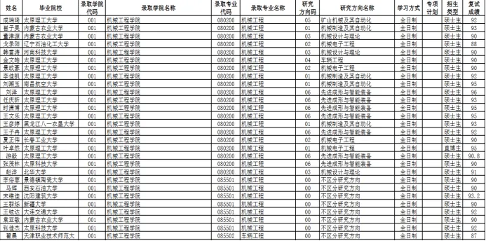 太原理工大学2026届推免拟录取名单已在学校研究生院完成公示,小编已将机电学院机械类专业录取数据整理如下: