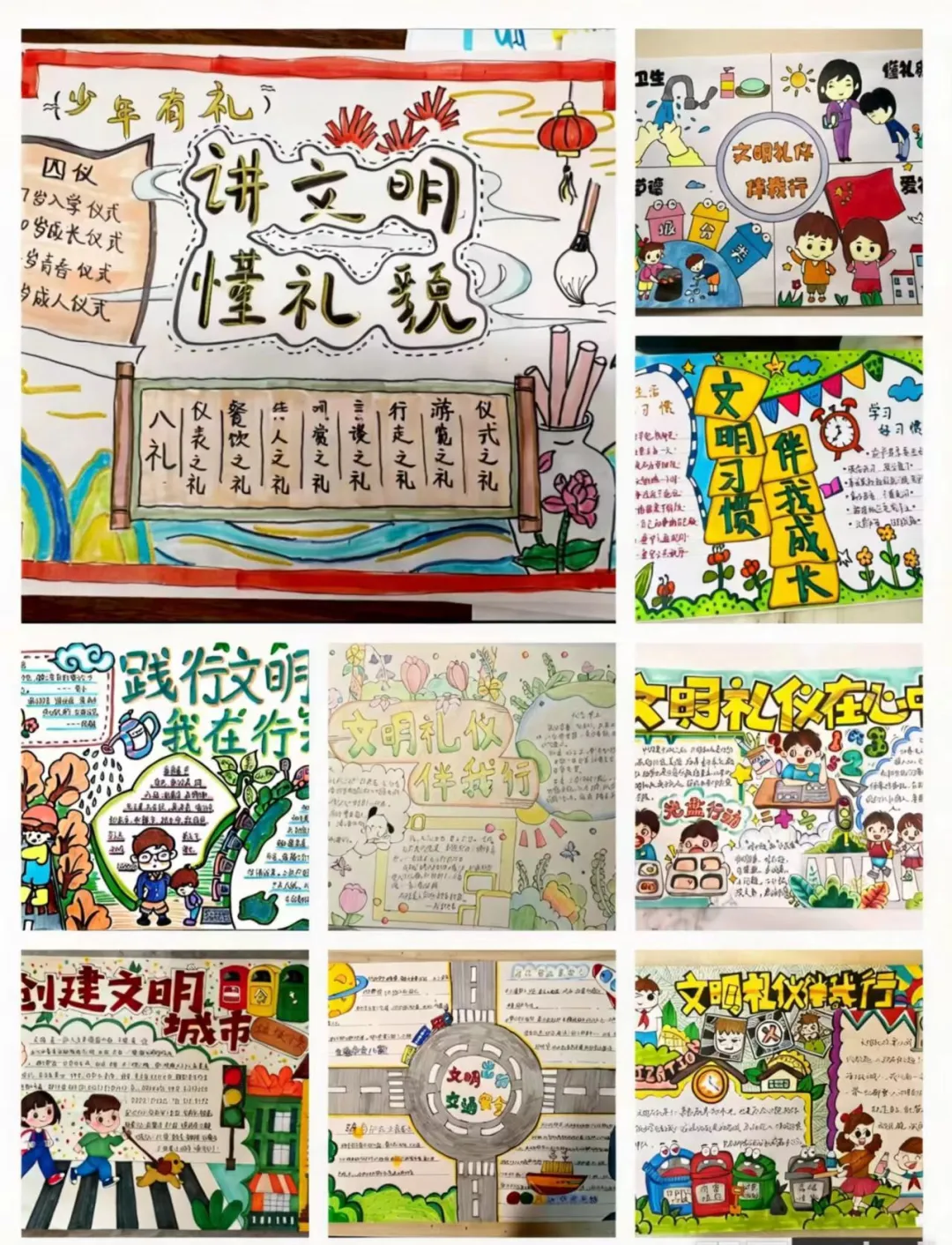以文载道,以美润心。校区将文化传承与文明创建深度融合,让文明在书香与墨香中生根发芽。各年级开展多彩手抄报评比,以笔绘文明、以画传新风,让文明理念跃然纸上;搭建家校共育桥梁,编写《小手拉大手,文明齐步走——致全体家长的一封信》,倡导家长和孩子共同学习文明知识、遵守文明规范、践行文明礼仪,家校同心,让文明家风浸润校园、滋养成长。