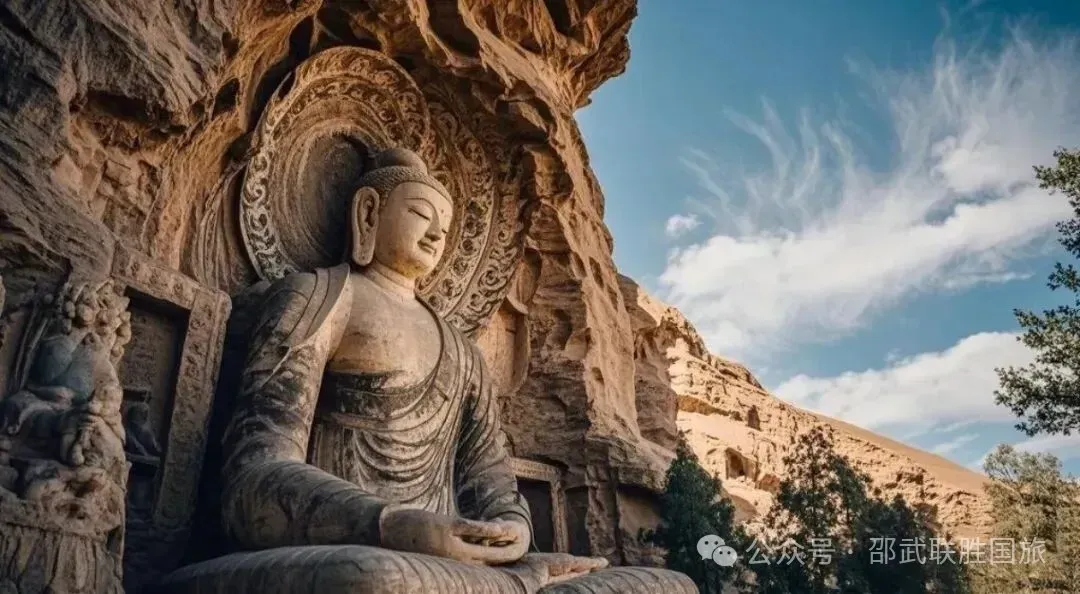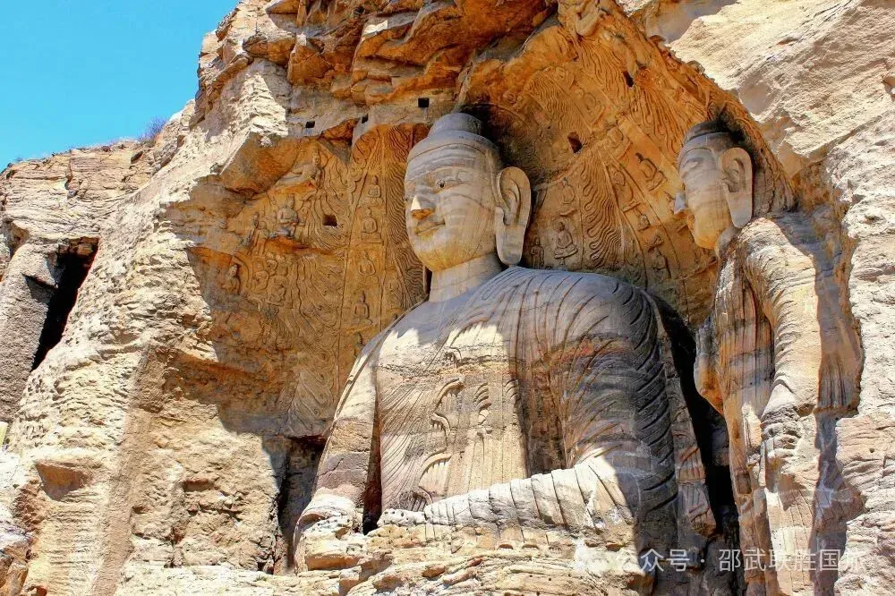 5A 景点、世界文化遗产、 中国三大石窟之-【云冈石窟】,现存主要洞窟 45 个,附属洞窟 209 个,雕刻面积达 18000余平方米。造像最高为 17 米,最小为2厘米,佛龛约计 1100 多个,大小造像 59000 余尊。云冈石窟距今已有 1500年的历史,是佛教艺术东传中国后,第一次由一个民族用一个朝代雕作而成皇家风范的佛教艺术宝库。