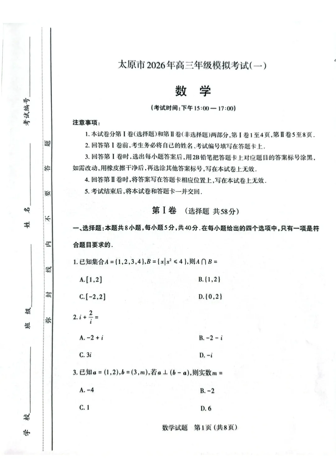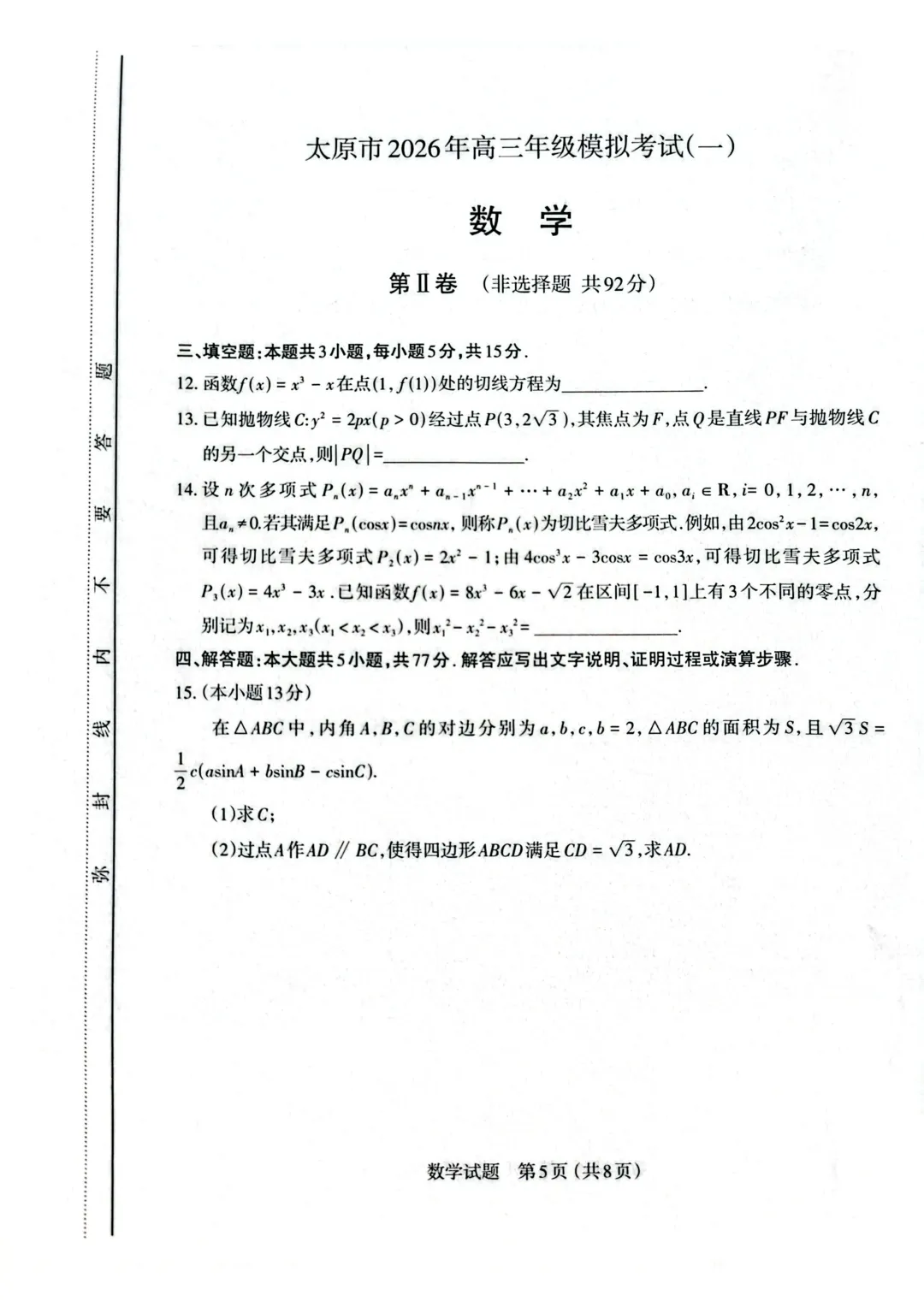 2023-2024学年太原市高二数学期末考试题,很好,12题,16题不错。