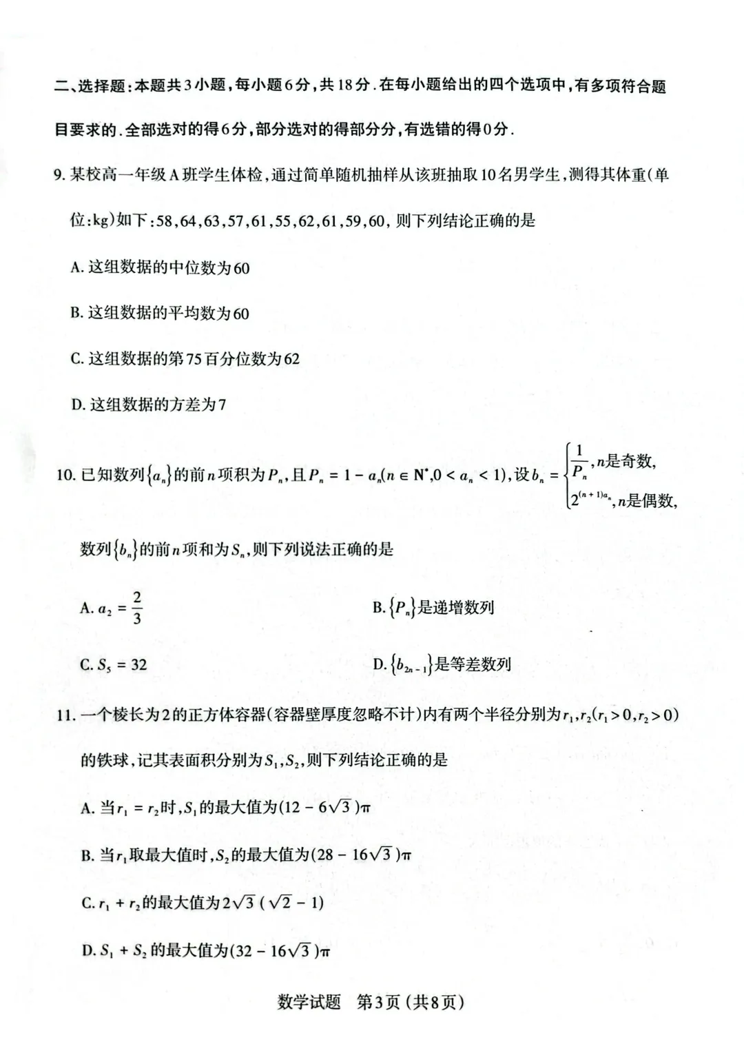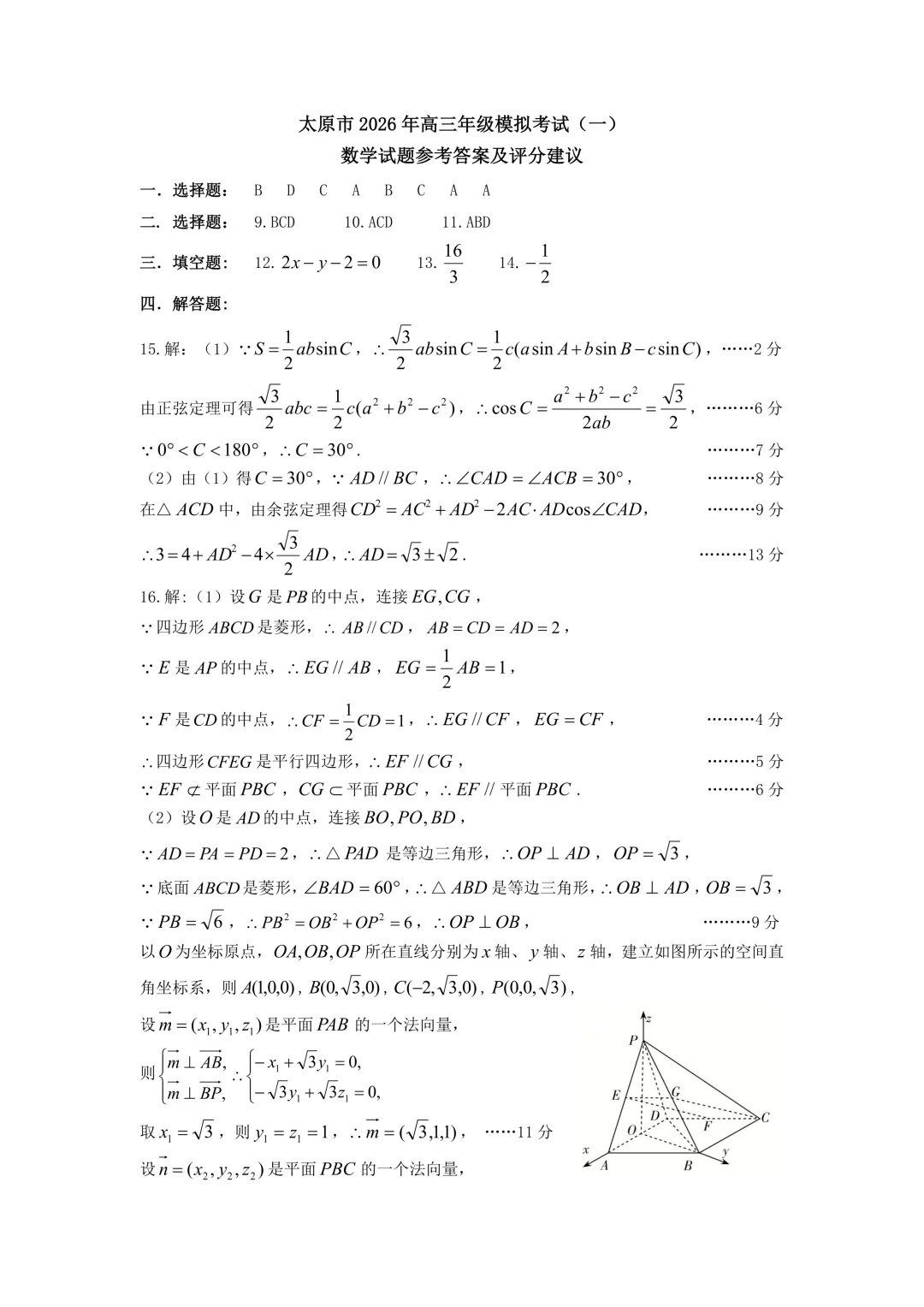 2023-2024太原市高一数学期末考试,题很不错。12题,16题很好