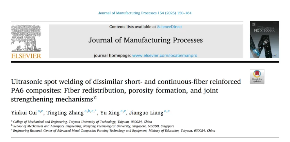 太原理工大学 JMP:异种短纤维与连续纤维增强PA6复合材料超声波点焊:纤维再分布、孔隙形成及接头强化机制