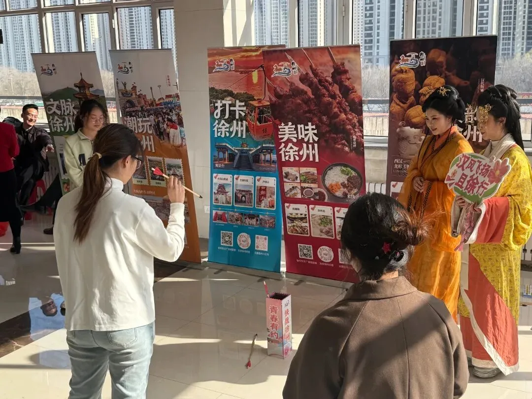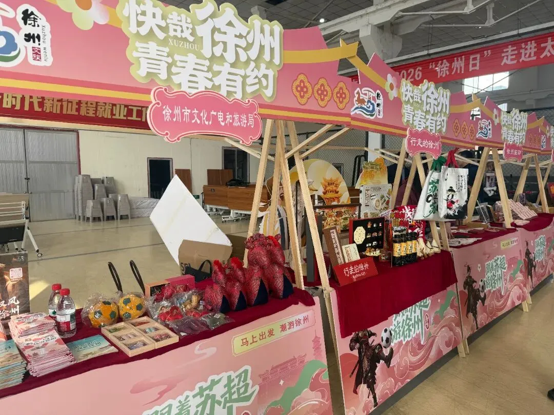 本次“徐州日”系列活动“快哉徐州·青春有约”主题文旅市集在三所高校同步开启,设置彭城七里文创展销、徐州非遗互动体验、文旅综合服务等区域,让太原学子在逛市集、玩互动中,沉浸式感受徐州的人文底蕴与青春活力。
