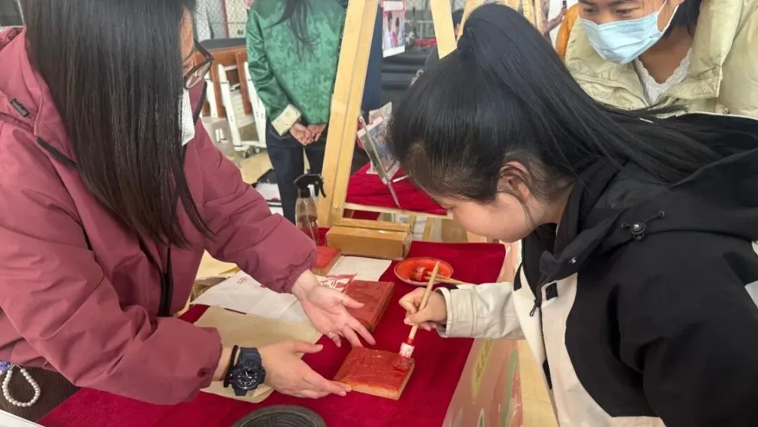 太原理工大学的市集现场尤为热闹。汉乐现场演奏,悠扬的乐声在校园里回荡;汉文化打卡区前,师生们身着汉服合影留念,沉浸式体验汉风之美;非遗互动体验区里,同学们亲手剪出徐州元素剪纸、捏出憨态可掬的面塑作品,感受传统匠心的魅力。“亲手做出汉画像石拓片,太有成就感了,也让我对徐州的汉文化产生了浓厚兴趣。”太原理工大学学生小杨说。