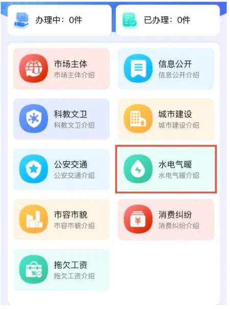 ✅第六步:在微受理主界面中,点选“水电气暖“模块。