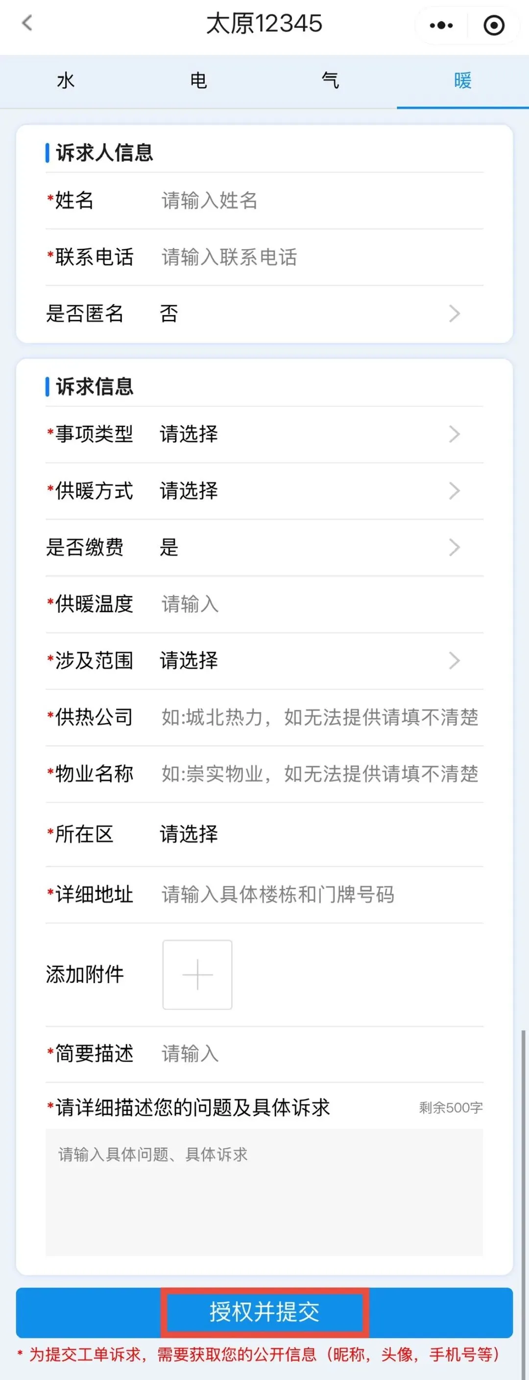 太原12345供热诉求操作流程