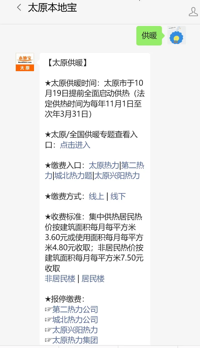 在聊天框发送【供暖】