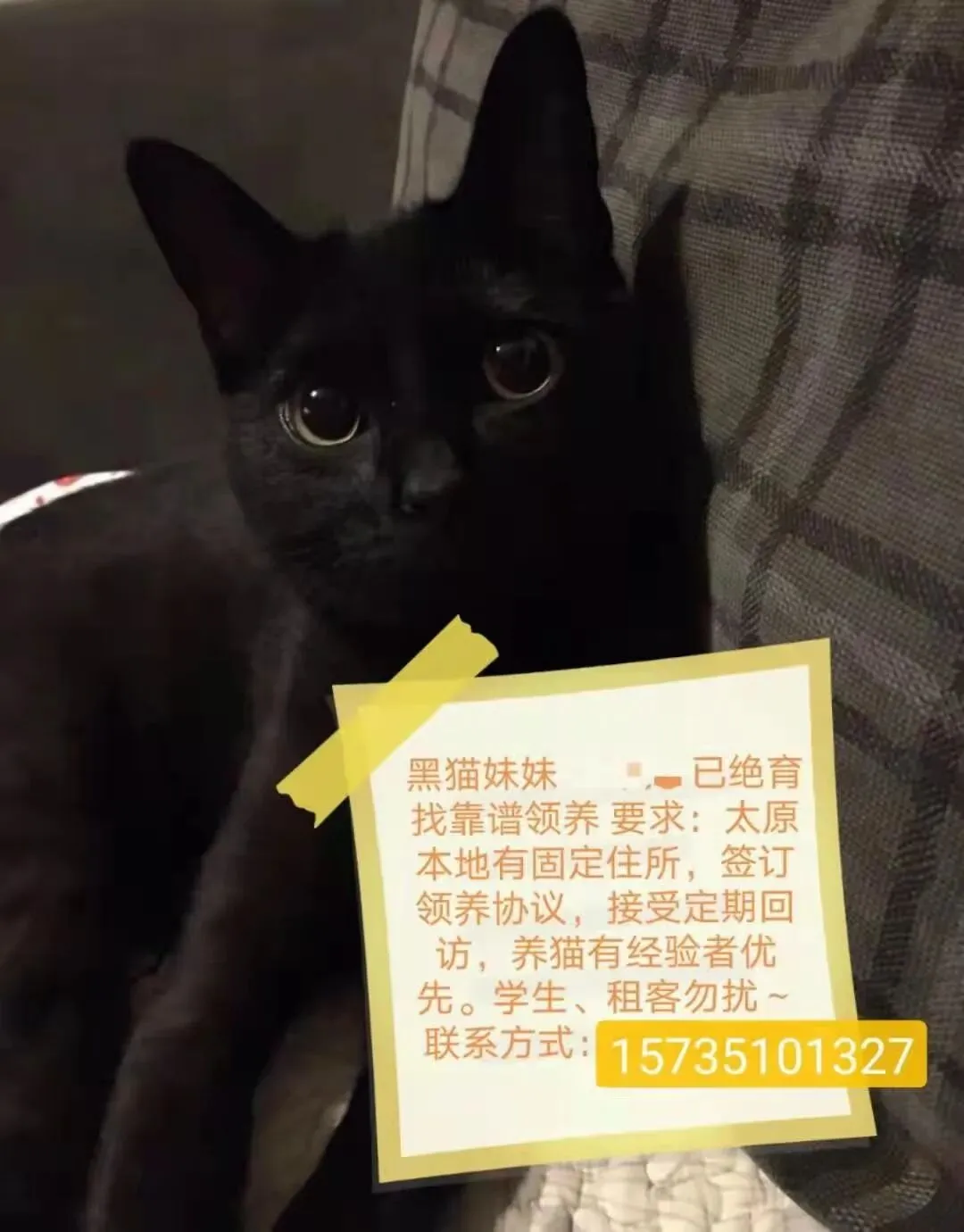 #领养人常住太原,经济独立,谢绝在校学生和无固定工作者;科学喂养,拒绝剩饭和毒粮;适龄绝育,定期疫苗和驱虫,有病医病;用心照顾和爱护猫咪,防止猫咪去危险的地方和出逃,需全屋封窗;不笼养不散养,不能私自转送或弃养;领养后定期回传照片/视频。#