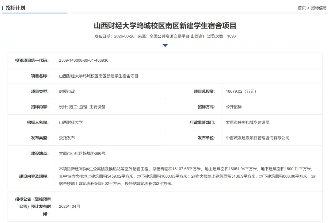 本项目新建3栋学生公寓楼及换热站等室外配套工程,总建筑面积18107.65平方米,地上建筑面积16054.94平方米,地下建筑面积1800.71平方米,其中1#宿舍楼地上建筑面积5459.02平方米,地下建筑面积1000.63平方米;2#宿舍楼地上建筑面积5136.9平方米,地下建筑面积800.08平方米;3#宿舍楼地上建筑面积5459.02平方米;换热站建筑面积252平方米。