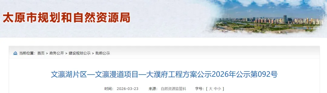 近日,该片区更新再次迎来实质性进展。太原市行政审批服务管理局网站发布了文瀛湖片区—文瀛漫道项目—大濮府工程方案公示。