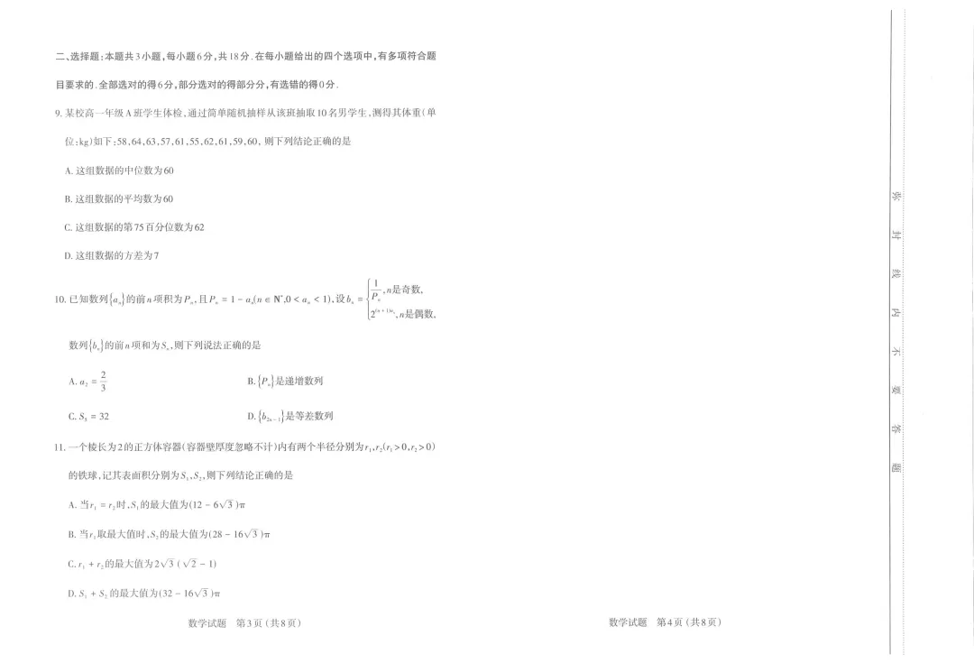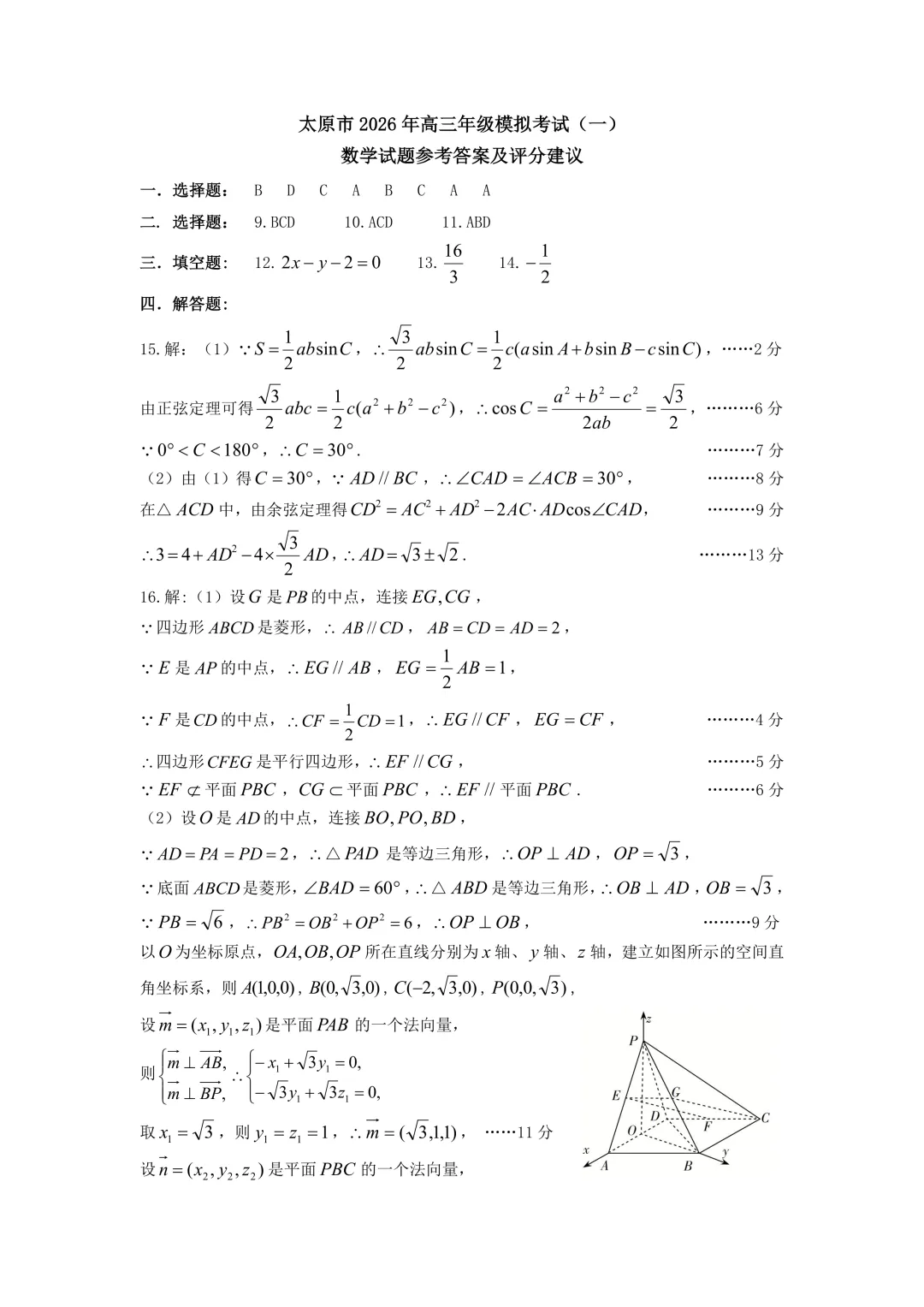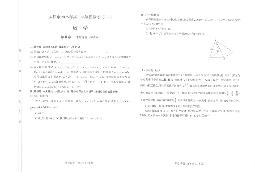 山西省太原市26年高三模拟考试数学试卷及答案(高三数学试卷)