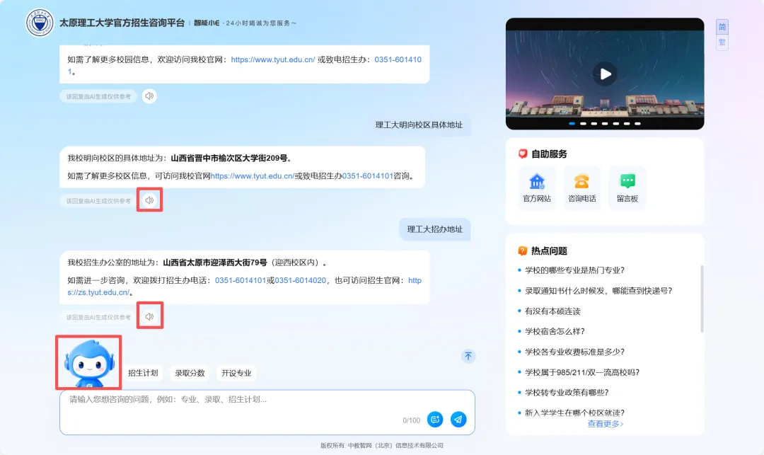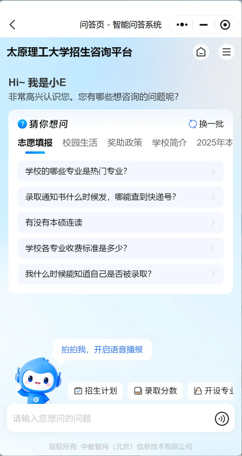 升级后的「智能招生问答系统」