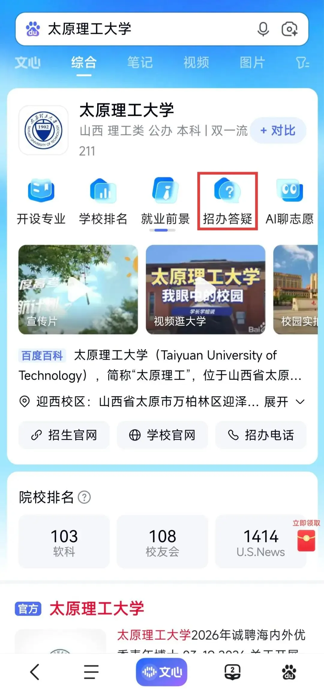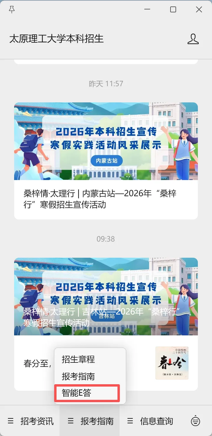 “太原理工大学本科招生”微信公众号主页