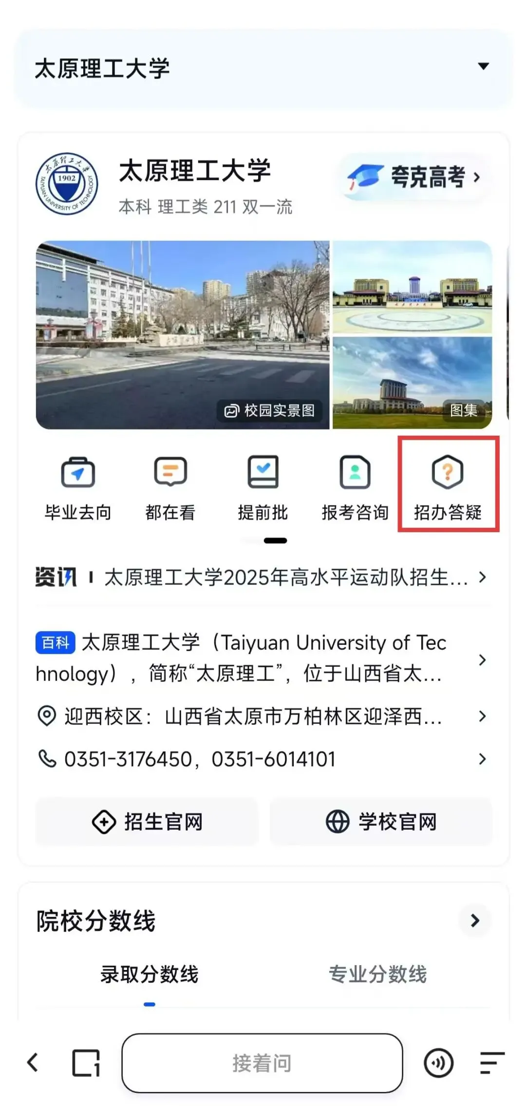 太原理工大学智能招生问答系统