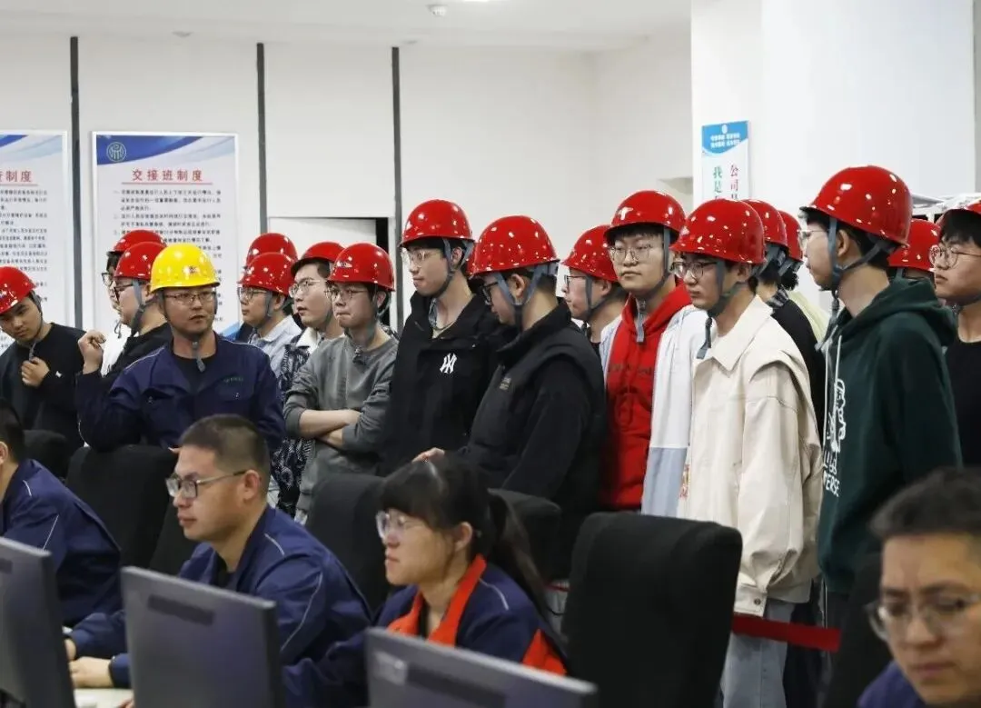 在生产一线,同学们依次走进集控中心、电解车间、锅炉车间、污水处理车间等区域,实地观摩生产全流程。工作人员细致讲解核心生产工艺与技术要点,将专业理论与工业实践紧密结合。同学们认真聆听、积极交流,直观感受课本知识在实际生产中的落地应用,进一步加深了对专业内涵与职业发展方向的理解。