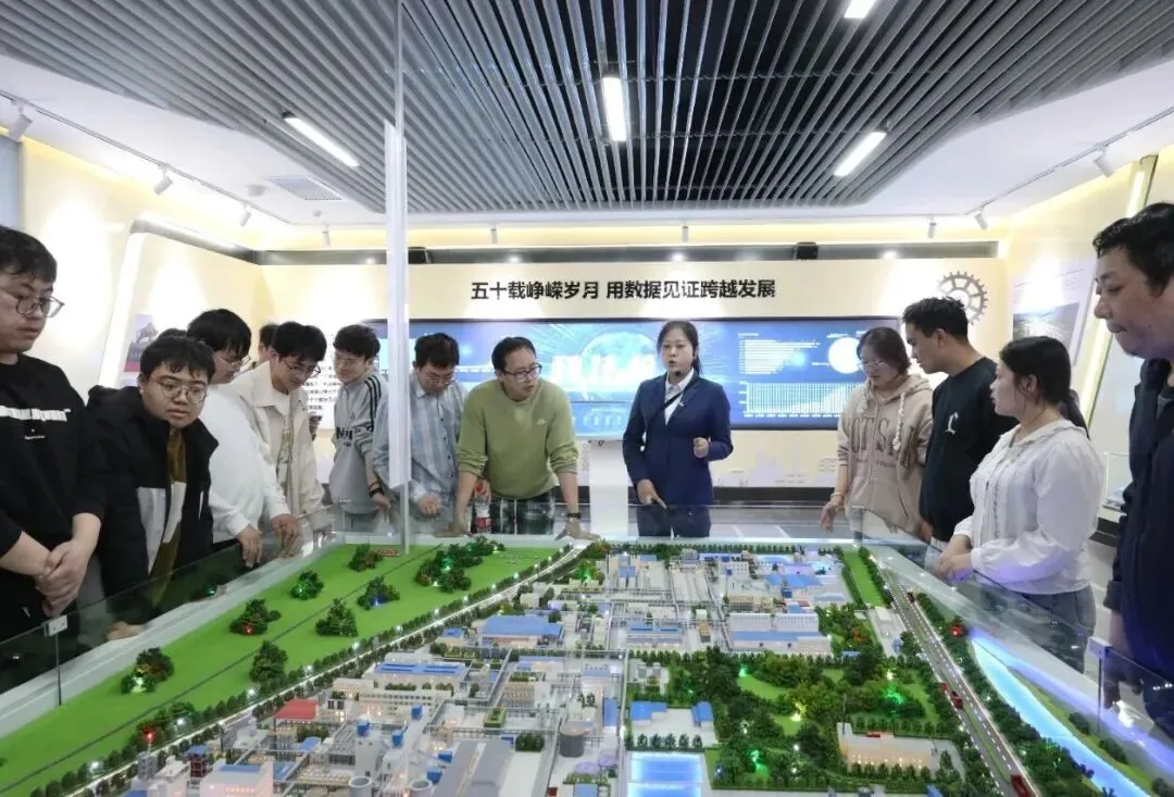 随后,师生一行来到公司厂史馆,全面了解企业发展历程。工作人员围绕企业创业发展、技术创新、荣誉成果、文化传承等方面进行详细介绍,充分展现了企业的责任担当与奋进精神。同学们在各类展品前驻足观看、交流探讨,在熟悉企业发展脉络的同时,对行业趋势、职业素养和就业方向有了更为清晰的认识。