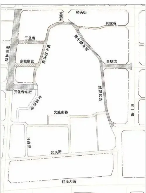 根据公告内容,项目覆盖柳巷北路、开化寺东街、三圣庵、东校尉营、海子边东西街、纯阳宫路及皇华馆等8条传统街巷,总面积达28,830.75平方米。规划建设以“漫步道+文态带”为核心功能,强调慢行系统与文化场景融合。