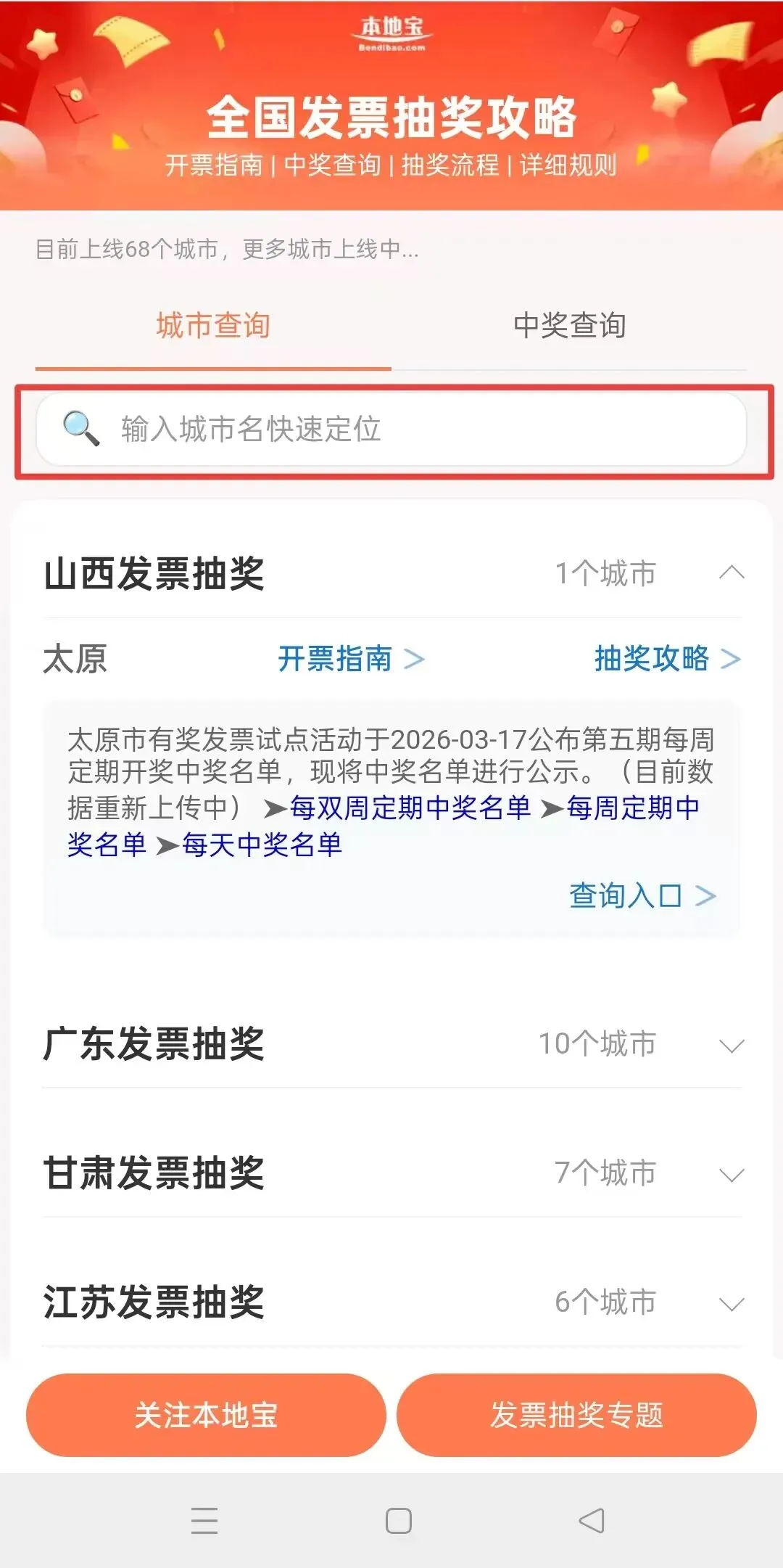 ✅旧版:需要一个一个手动翻找发票抽奖城市和对应的抽奖攻略